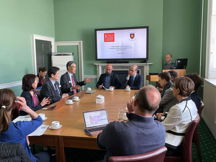 My first overseas business trip as President was to the Netherlands (Leiden) and the UK (London), which unexpectedly overlapped with part of Yukichi Fukuzawa's 1862 visit to Europe. I felt a sense of some mysterious connection. For Yukichi Fukuzawa, who began as a scholar of Dutch studies, I imagine that his visit to Leiden University, the oldest in the Netherlands, was particularly impressive in shaping his thoughts on what a higher education institution should be (as introduced by Teruyoshi Osawa, a teacher at the Chutobu Junior High School, in Mita-hyoron (official monthly journal published by Keio University Press) ). In the UK, at King’s College London, we were able to deepen our discussions on exchange in a building adjacent to Somerset House, which Yukichi Fukuzawa had visited.