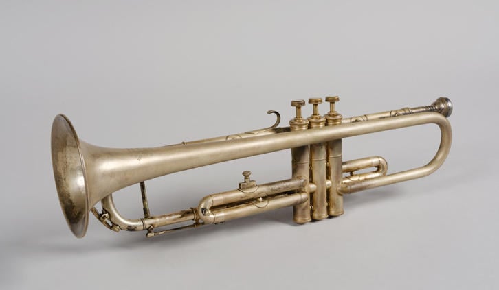 Takeo was familiar with Western music from an early age, and after entering Keio Yochisha Elementary School in 1918 (Taisho 7), he met the singing teacher Seitaro Ezawa. He studied piano and singing not only in class but also as extracurricular activities. In his fourth year, he was given his first opportunity to record a record. When Takeo's piano at home was destroyed in the Great Kanto Earthquake, Ezawa encouraged him to take up instruments such as the violin and trumpet. Takeo was initially shocked, thinking he was being told to stop singing, but he realized it was Ezawa's consideration to avoid overusing his throat during the voice-changing period. This is the trumpet he acquired at that time.