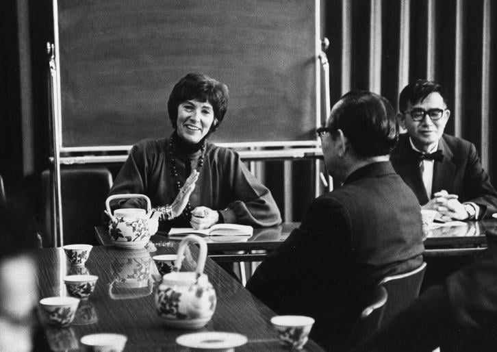 At that time, the Dean of the Faculty of Letters was Junzaburo Nishiwaki, a scholar-poet who had studied English linguistics at Oxford University in the 1920s and led modernism in Japan. To help Blacker with her student life shortly after her arrival, Nishiwaki introduced her to Hiro Ishibashi, then a student in the Department of English Literature. The two formed a lifelong friendship. Blacker visited Ueno Gakuen University—which was founded by Ishibashi's grandfather and where Ishibashi herself would later become president—many times to give lectures.