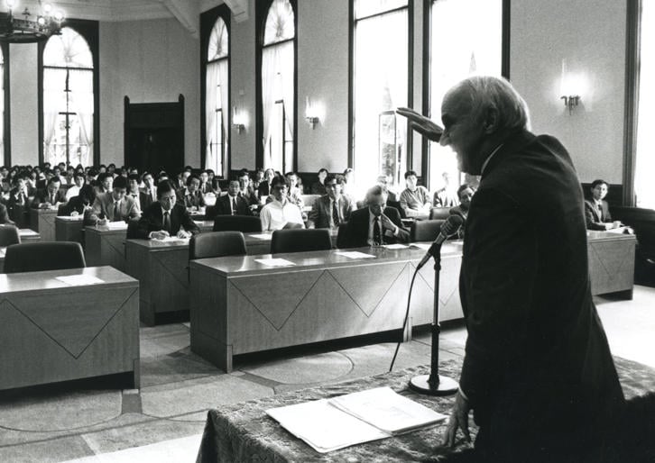 However, he did not visit Keio University simply to give a lecture. At that time, a full-time faculty member of Keio University, who used the Keio Economic Observatory (KEO) as a research base, had studied at Harvard University in the 1960s. During that time, they came into contact with Professor Leontief's research stance—specifically the construction of economic analysis models as an empirical science and their application to the real economy—and were greatly influenced academically. This influence was strongly reflected in the research activities undertaken by the faculty member upon their return to Japan, based at the Keio Economic Observatory (KEO). By the late 1970s, the Keio Economic Observatory (KEO) had become one of the few centers for empirical economic analysis in Japan at the time. Since then, academic exchange with Professor Leontief deepened. It was because of this relationship that the special lecture was planned as part of this ongoing exchange.
