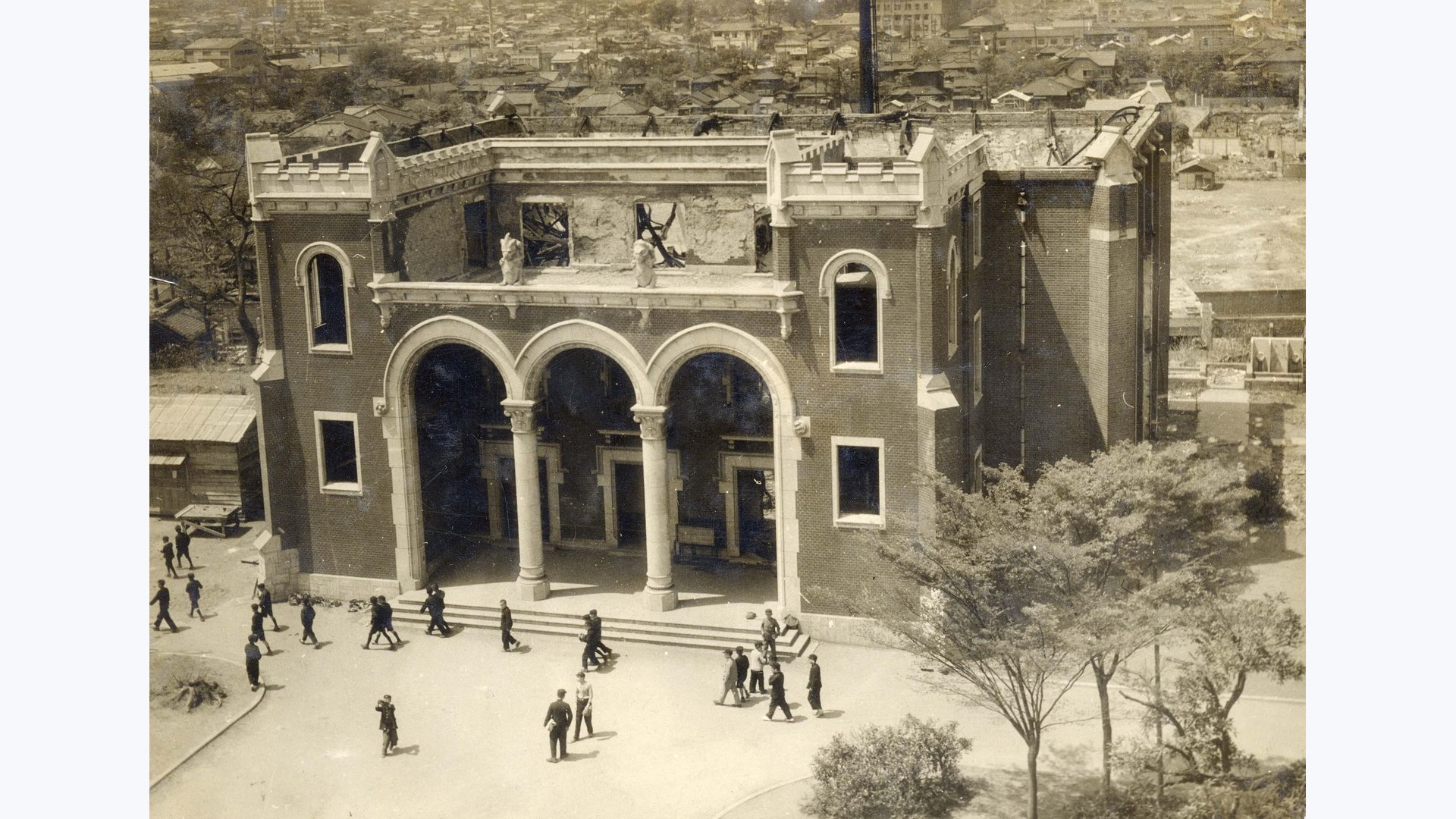 The war-damaged Grand Hall (Collection of the Fukuzawa Memorial Center for Modern Japanese Studies)