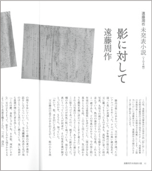 The news of the discovery of the unpublished work was immediately conveyed to Muneya Kato (former Editor-in-Chief of this magazine, who wrote the commentary for this issue), a favorite disciple of Shusaku Endo. With the consent of Endo's son, Ryunosuke Endo, Mr. Kato inquired about publishing and announcing it in our magazine. I cannot well express the incredible heat of the excitement that erupted in the editorial department. It was late May, after the deadline for the summer issue manuscripts had passed—a time when changes are normally impossible—but we immediately and fundamentally changed the structure of the summer issue just before going to press and placed this work at the core of the magazine. One can imagine that any major literary magazine would have jumped at the chance to publish an unpublished work by Shusaku Endo. However, our "Mita Bungaku" was chosen as the medium. This is simply because all parties involved agreed that the magazine into which Shusaku Endo poured his passion was the most appropriate place for the announcement. All of us in the editorial department feel extremely honored to have been present at such an occasion.