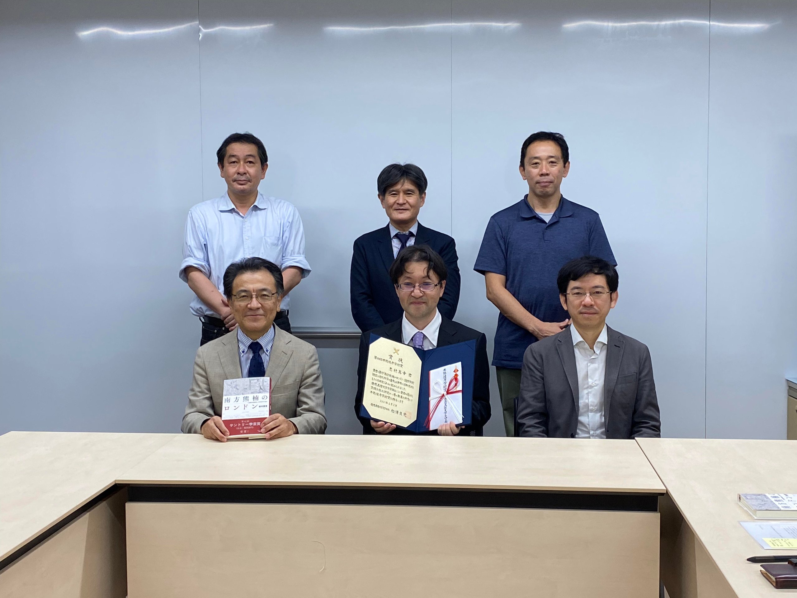 The award ceremony was held on Thursday, July 8, at the Mita Campus. Selection Committee Chairman Takaaki Chikamori explained the reasons for the selection, followed by Yoshimitsu Matsuura, Dean of the Faculty of Letters, who presented the award certificate and supplementary prize to the author of the winning work, Masayuki Shimura.