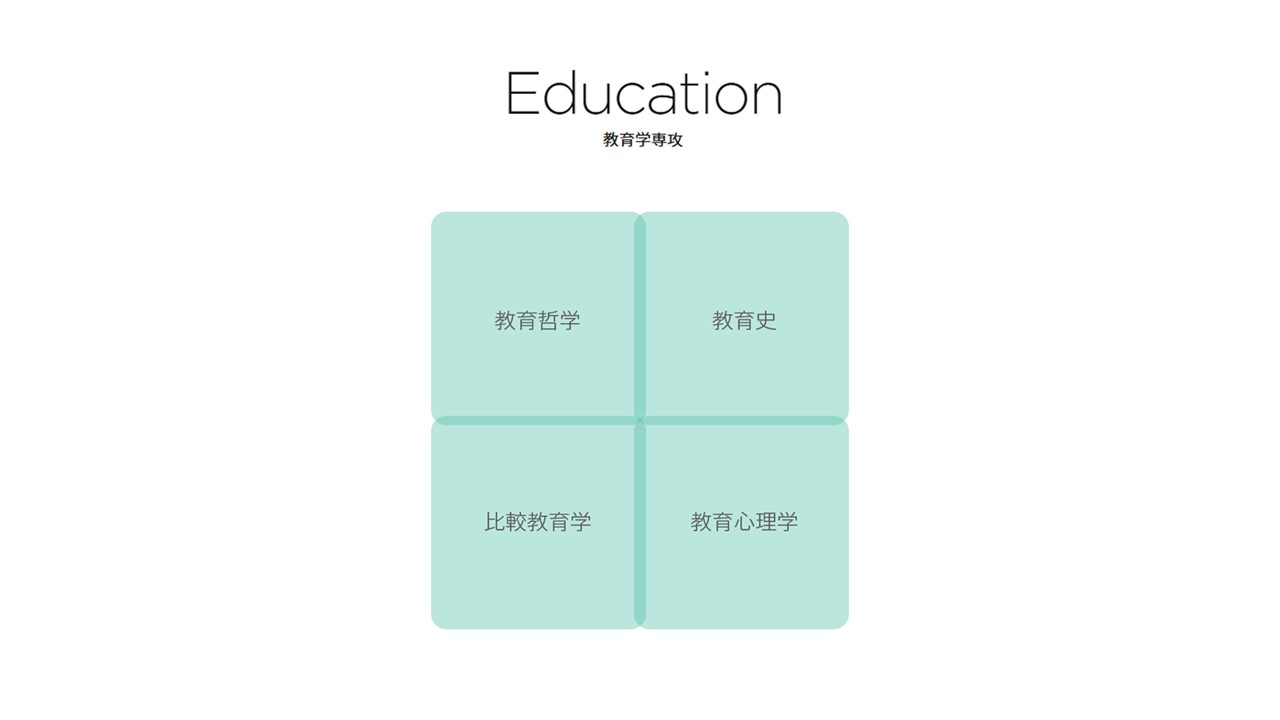 The Major in Education promotes advanced research across five domains: philosophy of education, history of education, comparative education, educational psychology, and school education. Its committee comprises tenured faculty from the Faculty of Letters’ Major in Education and the Teacher Training Course Center.Rather than limiting research to school education, the major covers broad human development activities from theoretical, historical, empirical, and experimental perspectives. As the three majors operate independently of undergraduate faculties, the Graduate School Committee includes members from the Faculty of Letters’ Department of Sociology, Psychology, Education and Human Sciences, as well as the Faculty of Economics, the Faculty of Law, the Teacher Training Course Center, and the Institute for Journalism, Media & Communication Studies.