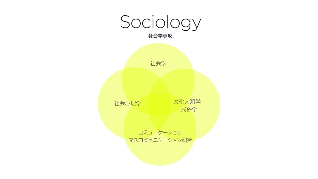 The Major in Sociology encompasses a wide variety of fields, including not only sociology itself, but also cultural anthropology and folklore studies, communication and mass communication studies, and social psychology. Even focusing solely on the field of sociology, the breadth of research includes theory, history, stratification, family, urban studies, culture, and globalization—covering both macro- and micro-level perspectives, as well as qualitative and quantitative approaches. In this way, the Major in Sociology serves as a forum bringing complementary and contrasting methodologies together.