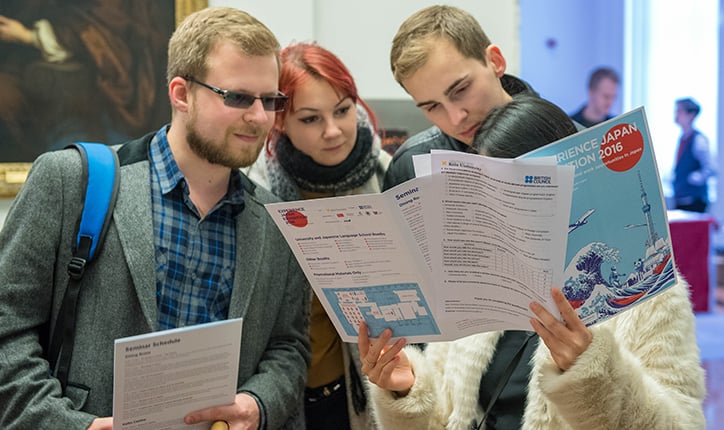In 2016, Keio University visited eleven countries and regions—from China, India, and Malaysia to the U.K. and Brazil—and participated in a total of 13 Japan study abroad fairs. Each year, Japanese institutions of higher education attend study abroad fairs to meet with talented students considering study in Japan and to explain the benefits of a Japanese education. Keio’s academic faculty and staff often give short seminars and presentations as well as set up information booths to answer any questions potential students might have about admissions and student life.