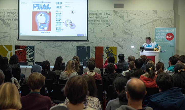 In addition to the information booths, EJE hosted a wide range of seminar programs: an introduction to digital education platformFutureLearn, where Keio offers courses; a crash course on diversity withinotakuculture byDr. Kazunori Sugiura, Associate Professor at Keio’s Graduate School of Media Design (KMD); study abroad experiences in Japan by British students; and information concerning employment in Japan. The event was filled with visitors eagerly seeking out information on work and study in Japan.
