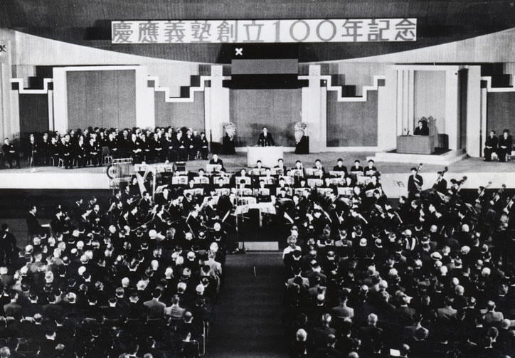 Nevertheless, hope for reconstruction gradually gained momentum through fundraising for a centennial commemorative project, which began in 1955 as Keio approached its 100th anniversary in 1958. However, with so many other school buildings and facilities to be rebuilt, it was impossible to commence construction on a structure large enough to serve as both an auditorium and gymnasium. However, once Hiyoshi was selected to be the venue for the centennial ceremony, construction on the Hiyoshi Commemorative Hall finally began in earnest. This hall was considered a significant symbol of Keio's reconstruction as this excerpt from an article inMita Shimbun, the student newspaper at the time, indicates: "While it seems that construction has only recently begun due to lack of funding, once complete, this building is bound to usher in the post-war era at Keio."