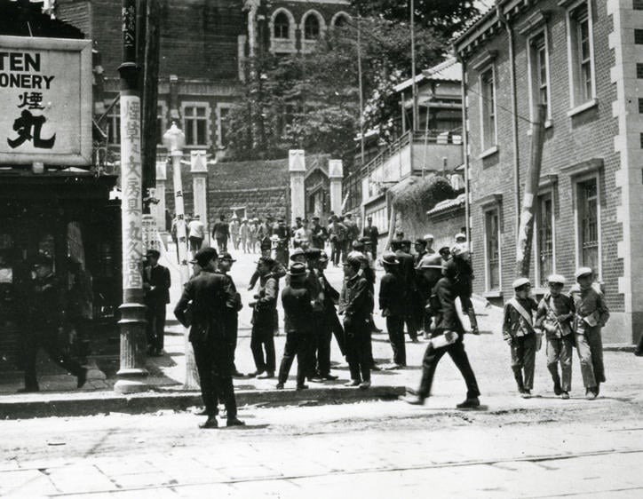 In November 1943, Keio held a send-off rally for students conscripted into the Imperial Japanese military amid the Second World War. Departing the Grand Lecture Hall—which would later be lost in the Tokyo air raids—Keio's student soldiers were bid farewell by their peers, exiting through the Front Gate before visiting Fukuzawa's grave at Azabu-san Zenpuku-ji Temple. During the war, there was one incident in which an Imperial Army truck damaged the gatepost ofMaboroshi no Mon. When Buhei Haiso, head of the then Supplies Division, reported the accident to President Shinzo Koizumi, he was told that there was no need to refrain from holding the military accountable and instructed to demand payment for the damages.