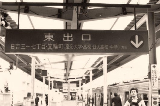 Until about twenty years ago, a pedestrian footbridge spanned the Tsunashima Highway in front of the east exit of Hiyoshi Station. Alumni from the late 1970s recall a time when crossing the bridge was quicker than waiting for the signal, a frequent shortcut for many students heading to class.