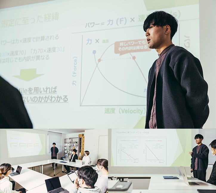 Matsudaira participates in the Sports Science Lab, where they regularly analyze players’ body composition using the same devices used by medical professionals, evaluate performance using force-velocity profile, and perform running tests utilizing phototube sensors. Body composition analysis gathers physiological data— including water and protein levels and the amount of muscle and fat in different parts of the body—to obtain data for training and, in consultation with laboratory staff, create practice regimens for the players.