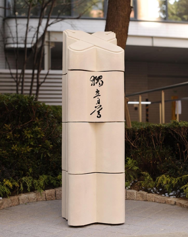 The monument, designed by the acclaimed architect Yoshiro Taniguchi, features a granite book sculpture resting upon a black granite base. The book is inscribed with the initial lines in the same font of the first edition of Fukuzawa'sAn Encouragement of Learning: "Heaven, it is said, does not create one person above or below another." Interestingly, this very site is whereKaitai-Shinsho: New Text on Anatomy, one of the most influential medical texts of its time, was first translated from Dutch into Japanese during the 18th century by clan physician Ryotaku Maeno and others. Adjacent to the centennial commemoration stands a separate monument that celebrates the birthplace of Western learning in Japan, honoring this remarkable achievement. Collectively these two monuments honor the beginnings of modern culture in Japan.
