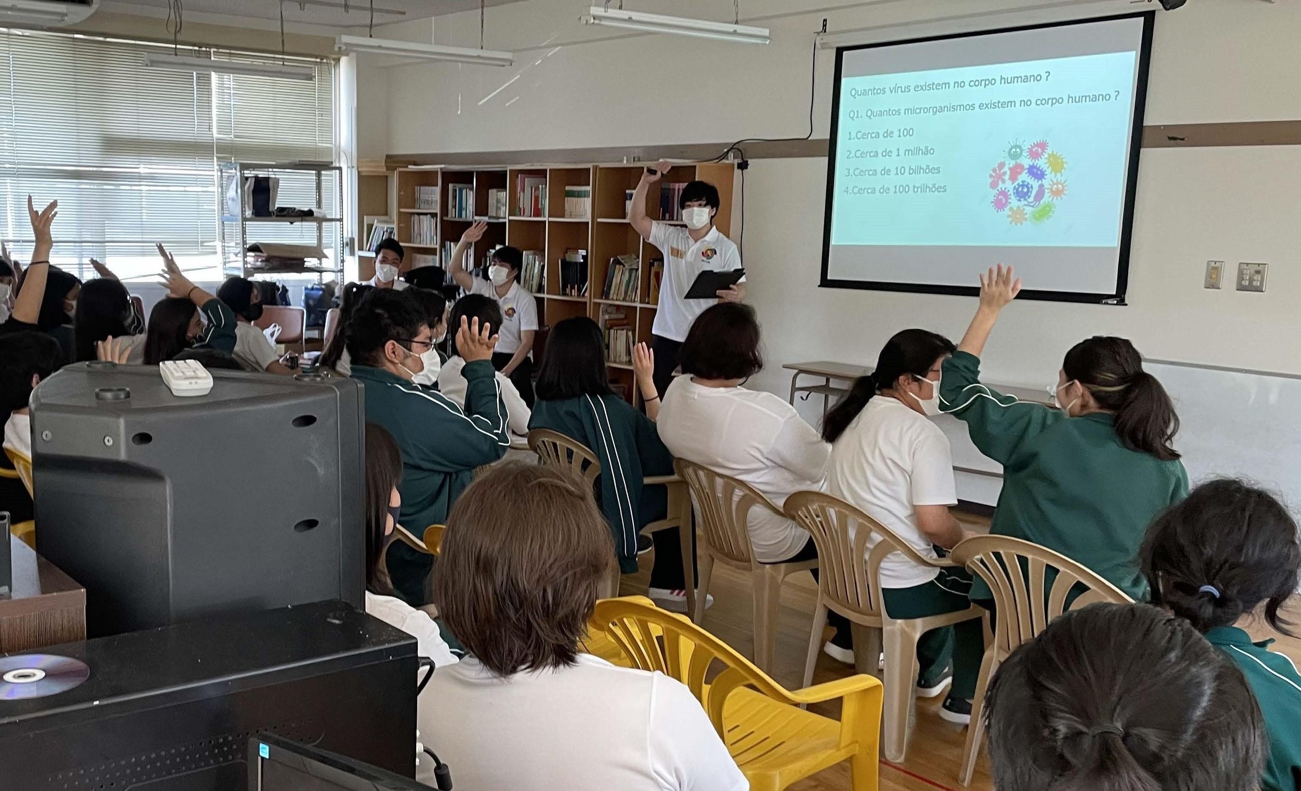 Sato: At EAS Hamamatsu, a Brazilian international school, we lectured on infectious diseases in Portuguese and conducted a well-being survey with the students. The children were all cheerful and enthusiastic about learning, but there are still significant language and identity barriers for many of these international students, which seem to have an effect on their mental health.