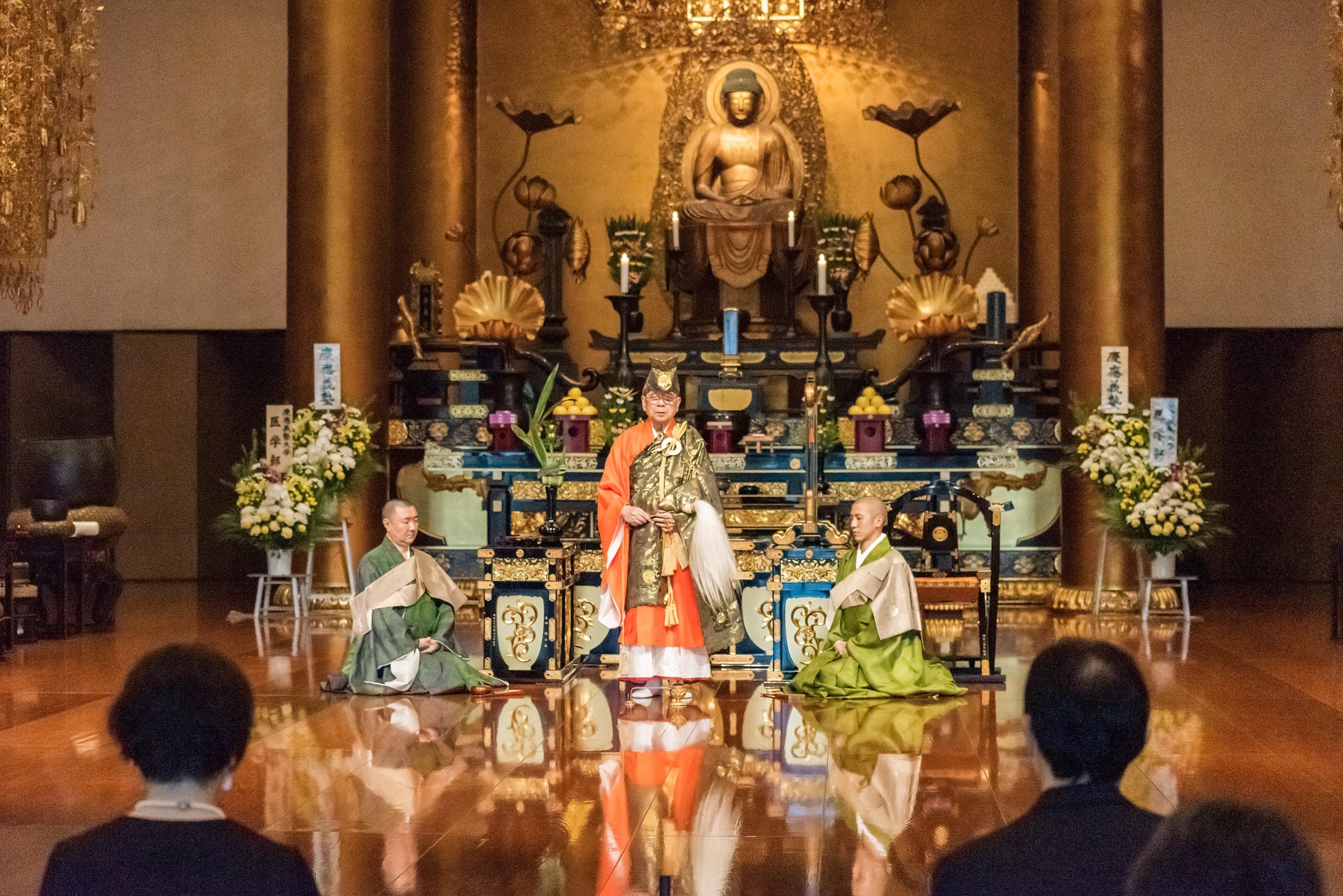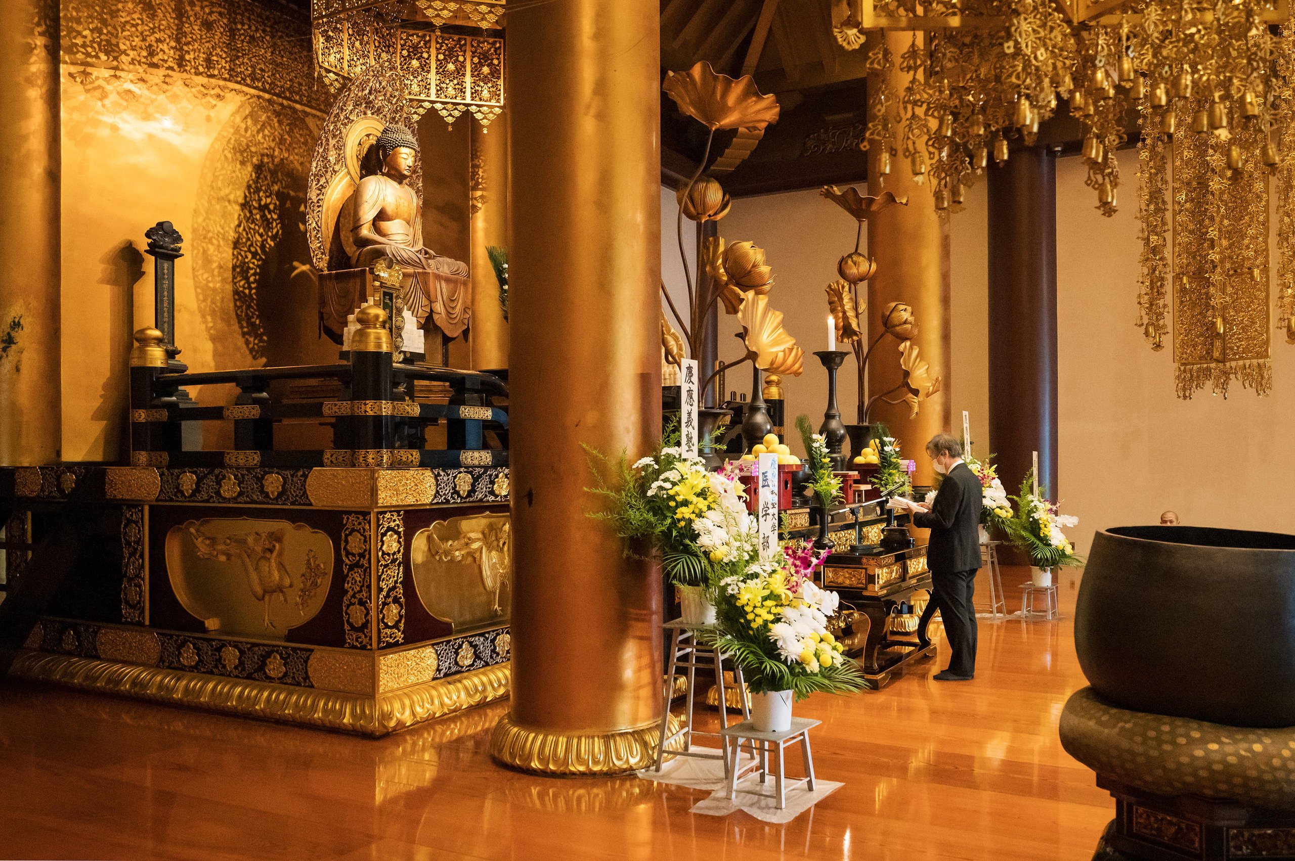 Every year during the autumn equinox, the School of Medicine holds a memorial service for anatomical donors to pray for the souls of those who have graciously donated their bodies for the advancement of medical education and academic research. The service welcomes the bereaved families and is attended by faculty, staff, and medical students. This service has been held at Zojoji Temple in Shiba Park, Minato-ku, since 1928 and is considered one of the most important events for the School of Medicine. This year, due to the spread of COVID-19, the service was held with only representatives from Keio University and medical students in attendance, while taking precautions to prevent infection.