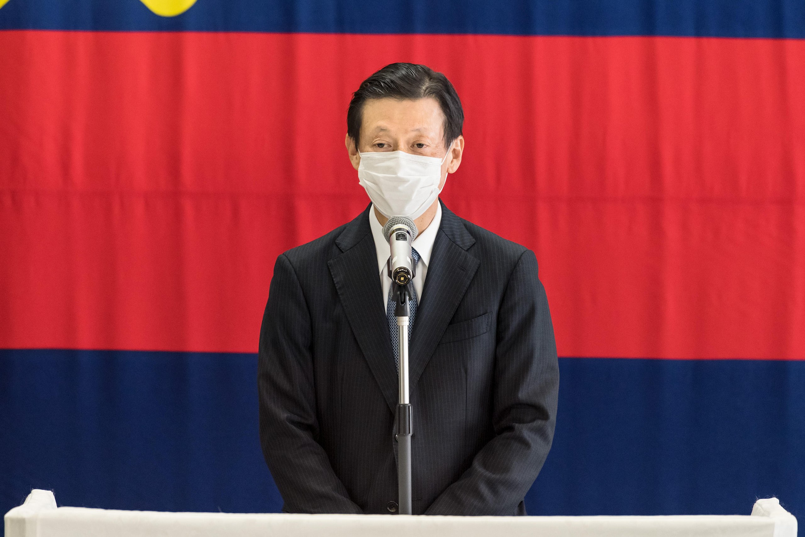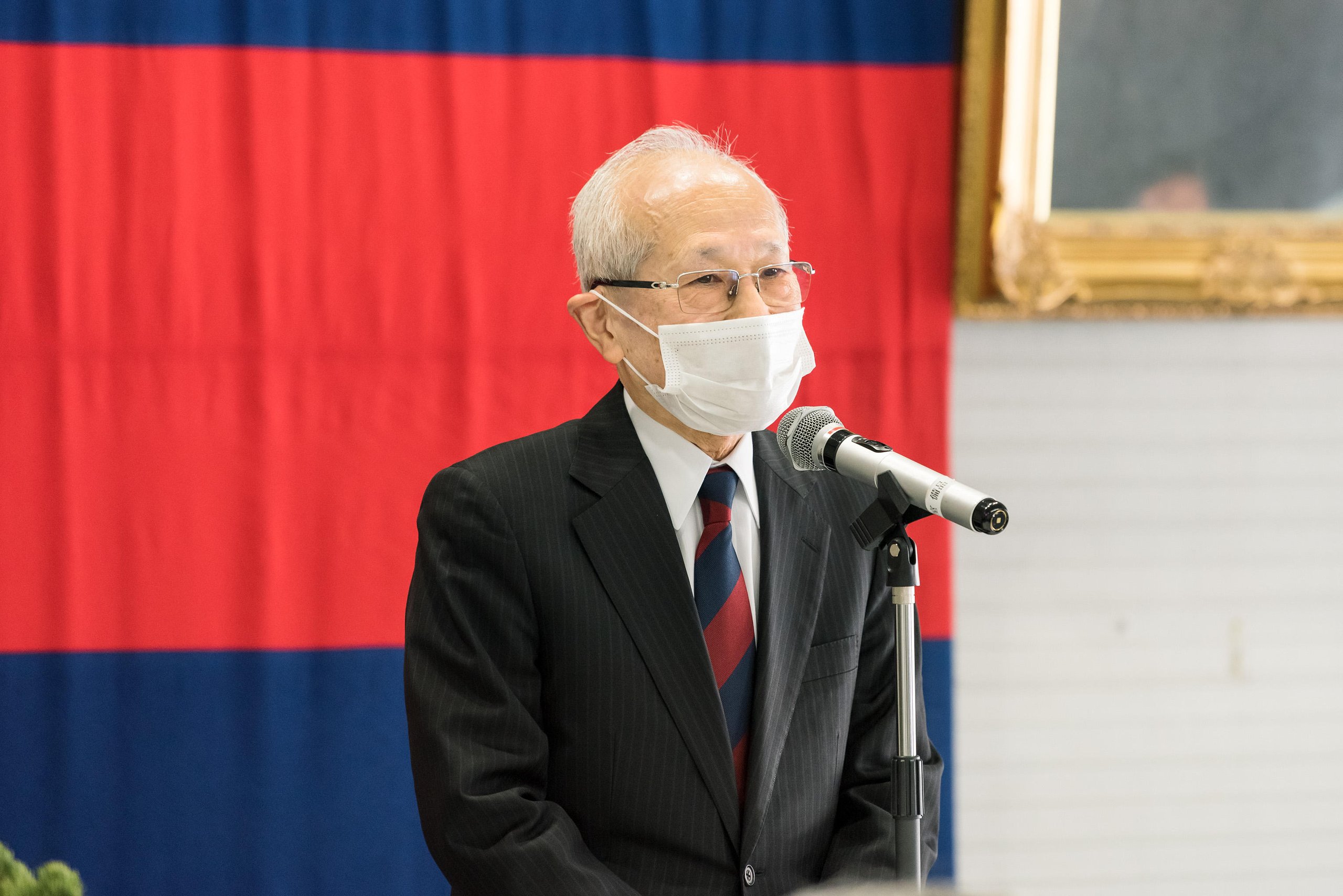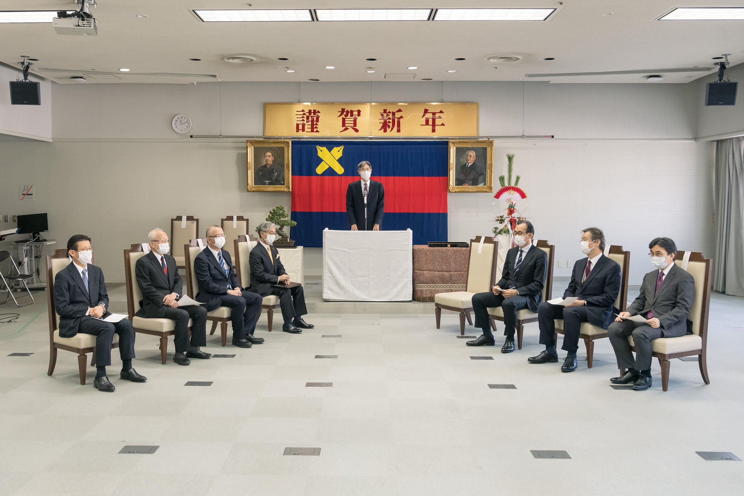 The School of Medicine holds a New Year's Celebration every year for faculty, staff, and Sanshikai members. This year, due to the spread of COVID-19, the event was held on Wednesday, January 5, with only authorized personnel in attendance and with thorough infection prevention measures, such as the mandatory wearing of masks at all times. The ceremony was live-streamed via a Zoom webinar from the main conference room on the 11th floor of Building 2 of Keio University Hospital.