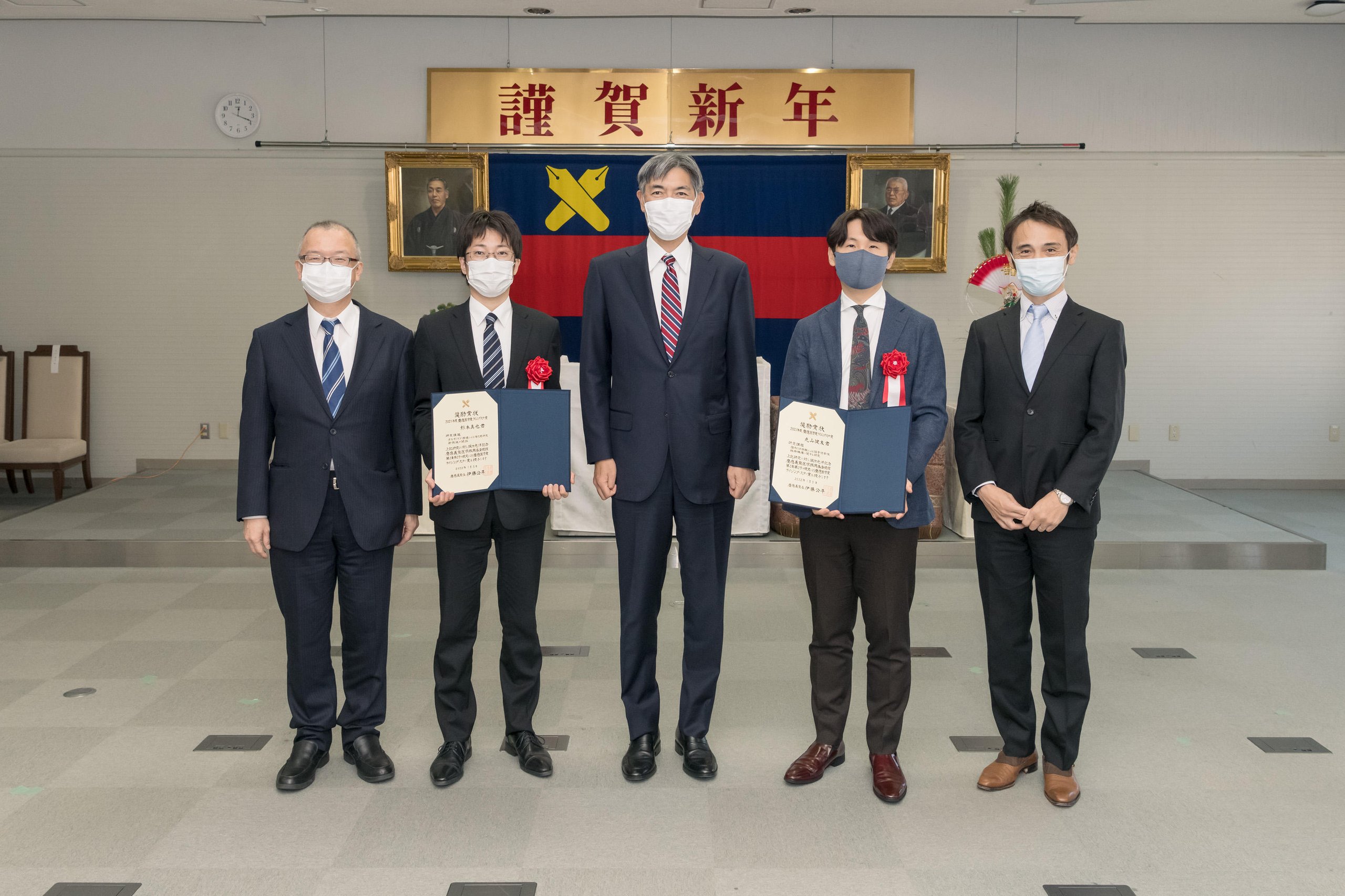 In conjunction with the New Year's Celebration, the award ceremony for the Keio Medical Science Prize Rising Star Award, which is supported by the Sakaguchi-Mitsuhiro Memorial Keio University Medical Science Fund, was held. The two recipients were Dr. Kenta Maruyama, Project Associate Professor at the National Institute for Physiological Sciences, National Institutes of Natural Sciences, and Dr. Shinya Sugimoto, Assistant Professor at The Sakaguchi Laboratory (Organoid Medicine), Keio University School of Medicine.