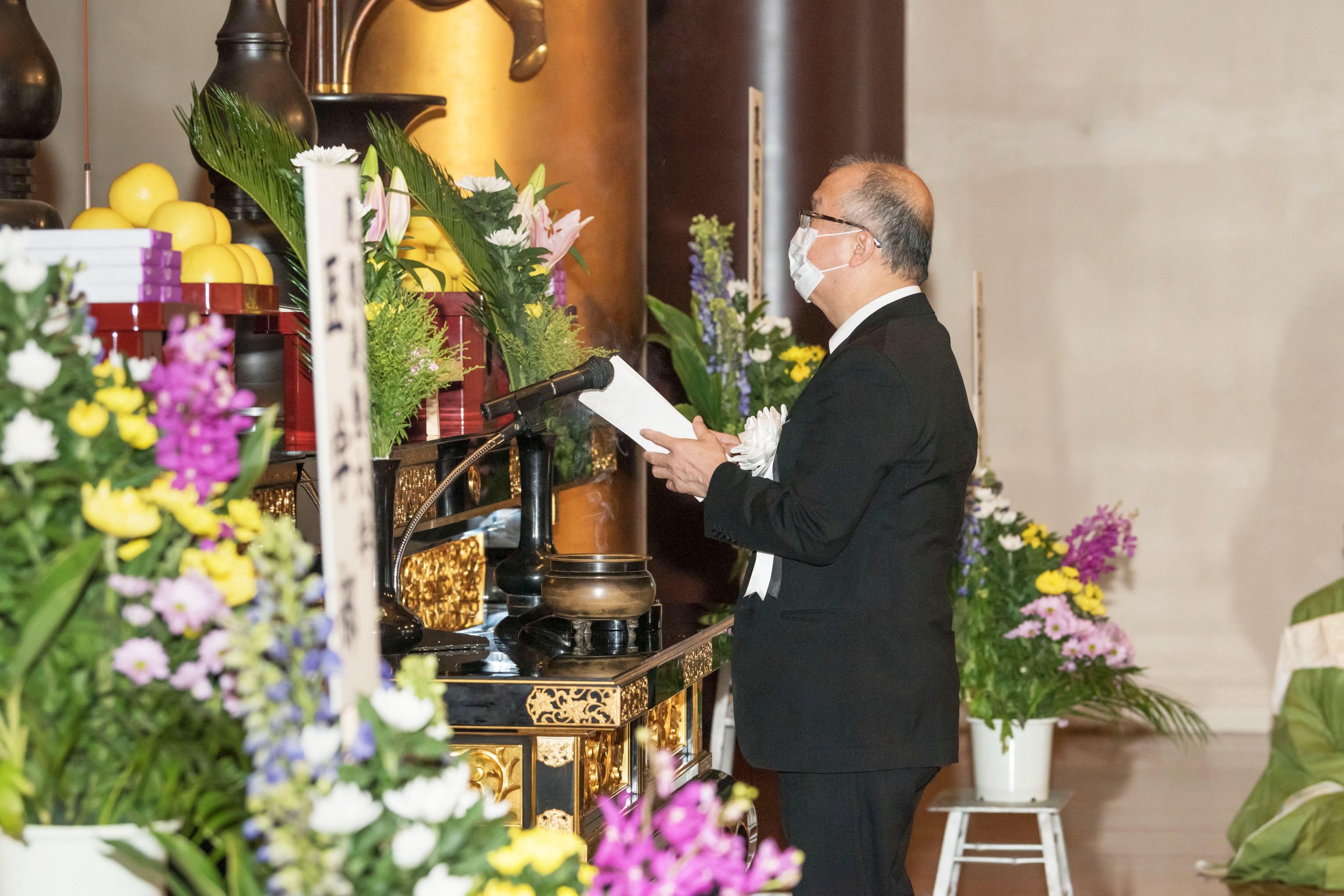 Every year during the autumn equinox, the School of Medicine holds a memorial service for the souls of anatomical donors, inviting the bereaved families and attended by faculty, staff, and medical students. The purpose of the service is to pray for the souls of those who have graciously donated their bodies for the advancement of medical education and academic research. This service has been held at Zojoji Temple in Shiba Park, Minato Ward, since 1928 and is positioned as one of the most important events for the School of Medicine. This year, due to the spread of COVID-19, the service was held with careful consideration for infection prevention measures, attended only by representatives of Keio University and School of Medicine students.