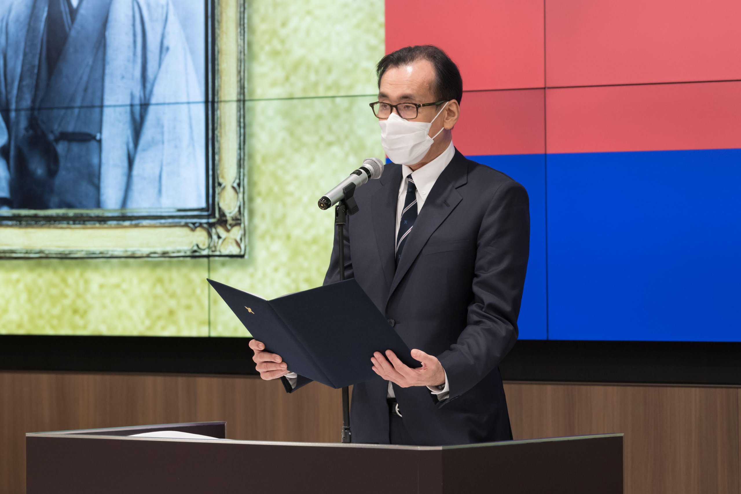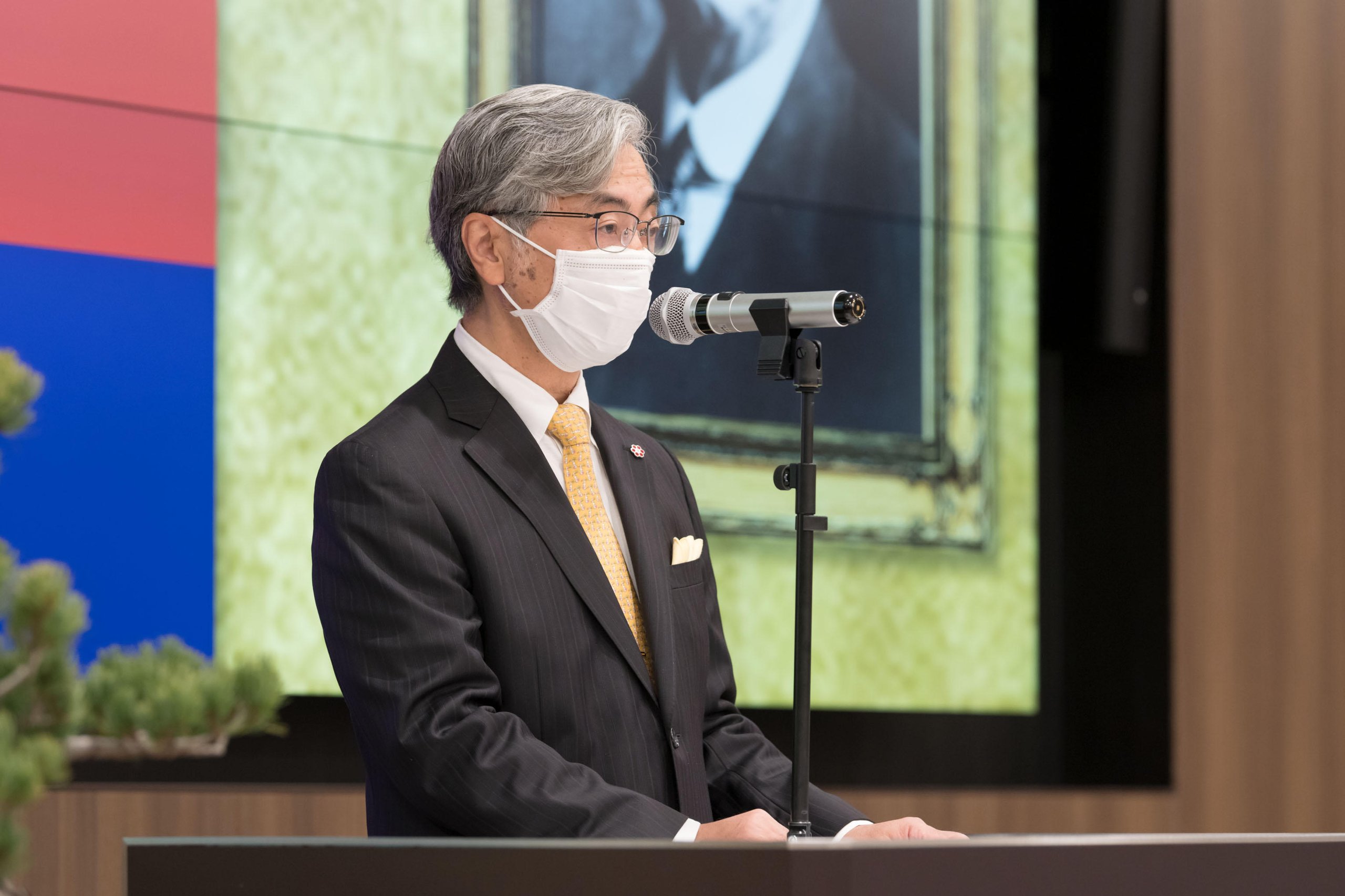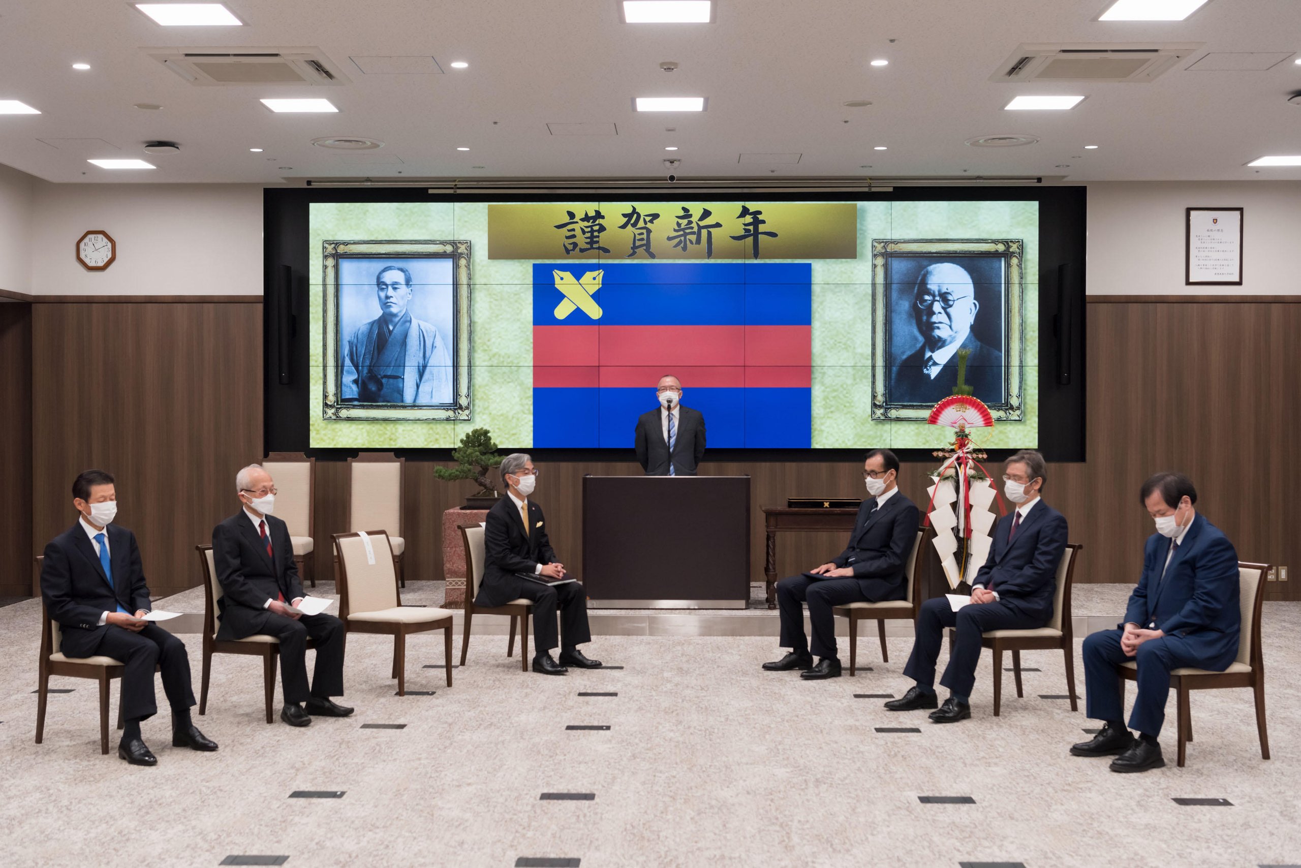 Every year, the School of Medicine holds a New Year Celebration for faculty, staff, and Sanshikai members to welcome the new year. This year, due to the spread of COVID-19, the event was held on Thursday, January 5, with only authorized personnel in attendance and with thorough infection prevention measures, such as the mandatory wearing of masks at all times. The ceremony was live-streamed via a Zoom webinar from the main conference room on the 11th floor of Building 2 of Keio University Hospital.