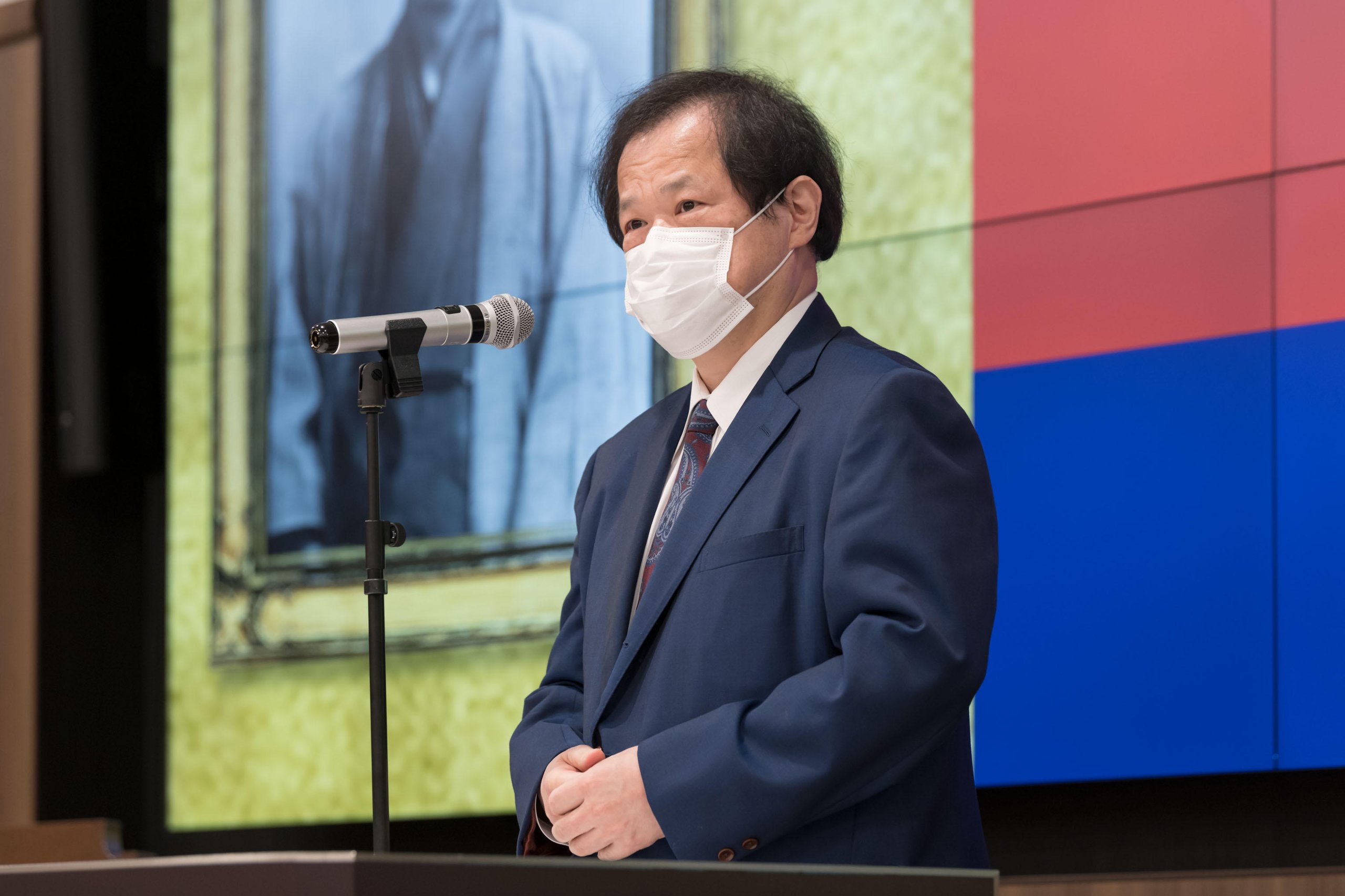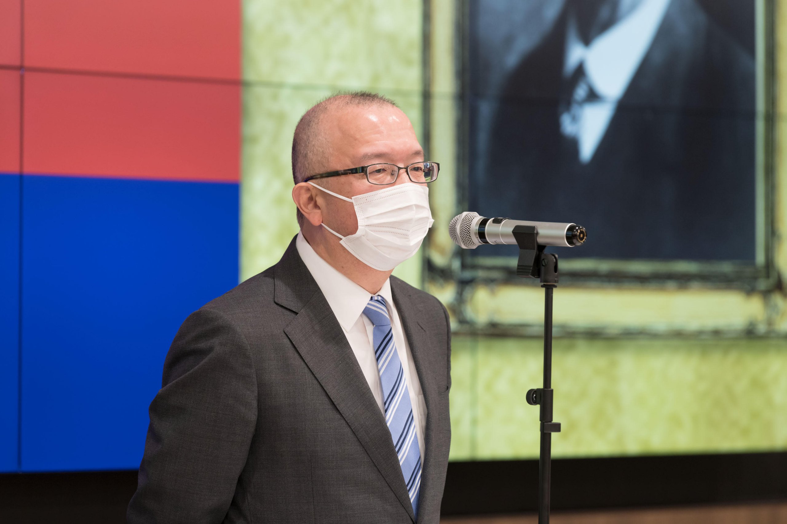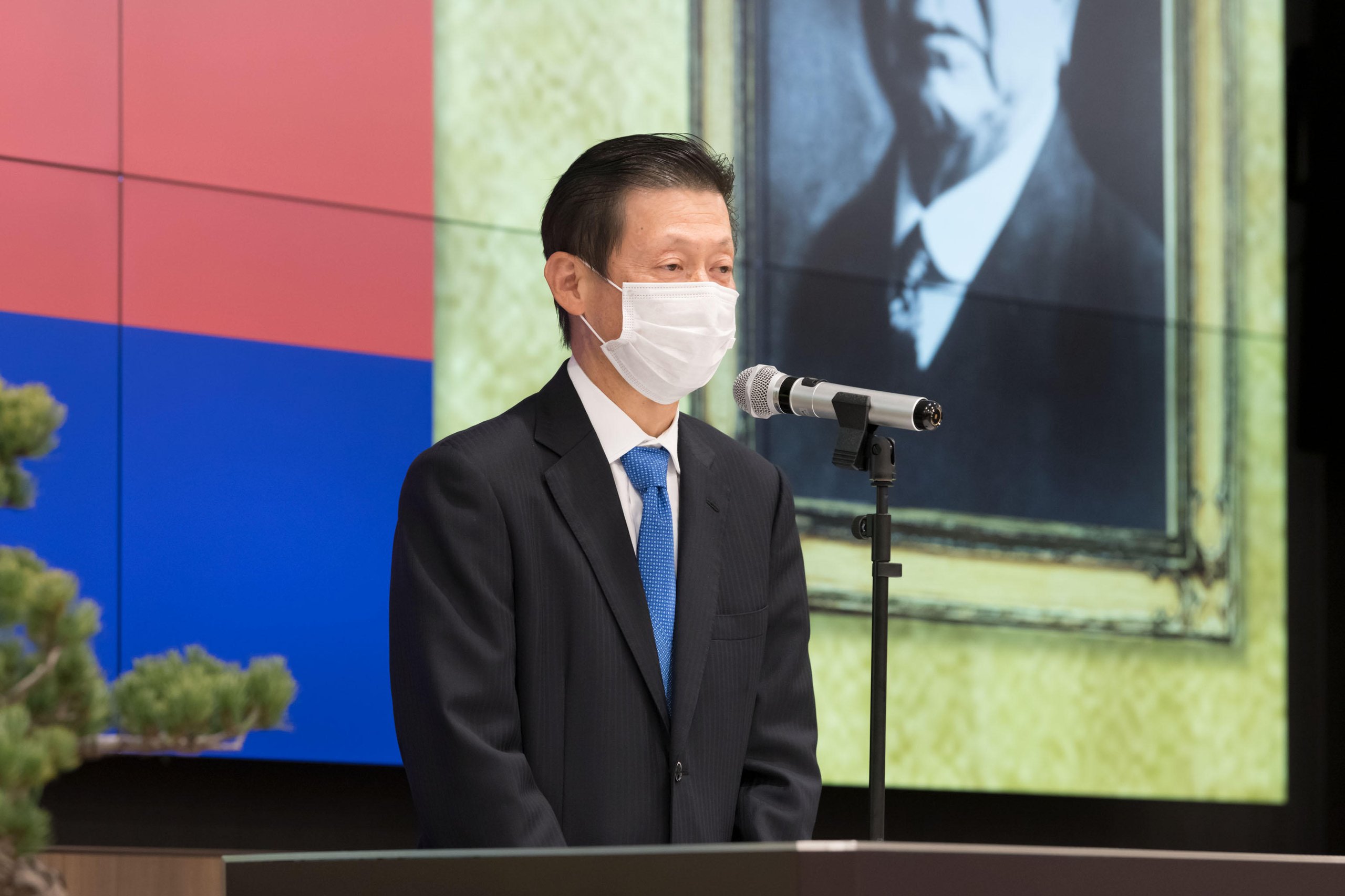 Every year, the School of Medicine holds a New Year Celebration for faculty, staff, and Sanshikai members to welcome the new year. This year, due to the spread of COVID-19, the event was held on Thursday, January 5, with only authorized personnel in attendance and with thorough infection prevention measures, such as the mandatory wearing of masks at all times. The ceremony was live-streamed via a Zoom webinar from the main conference room on the 11th floor of Building 2 of Keio University Hospital.
