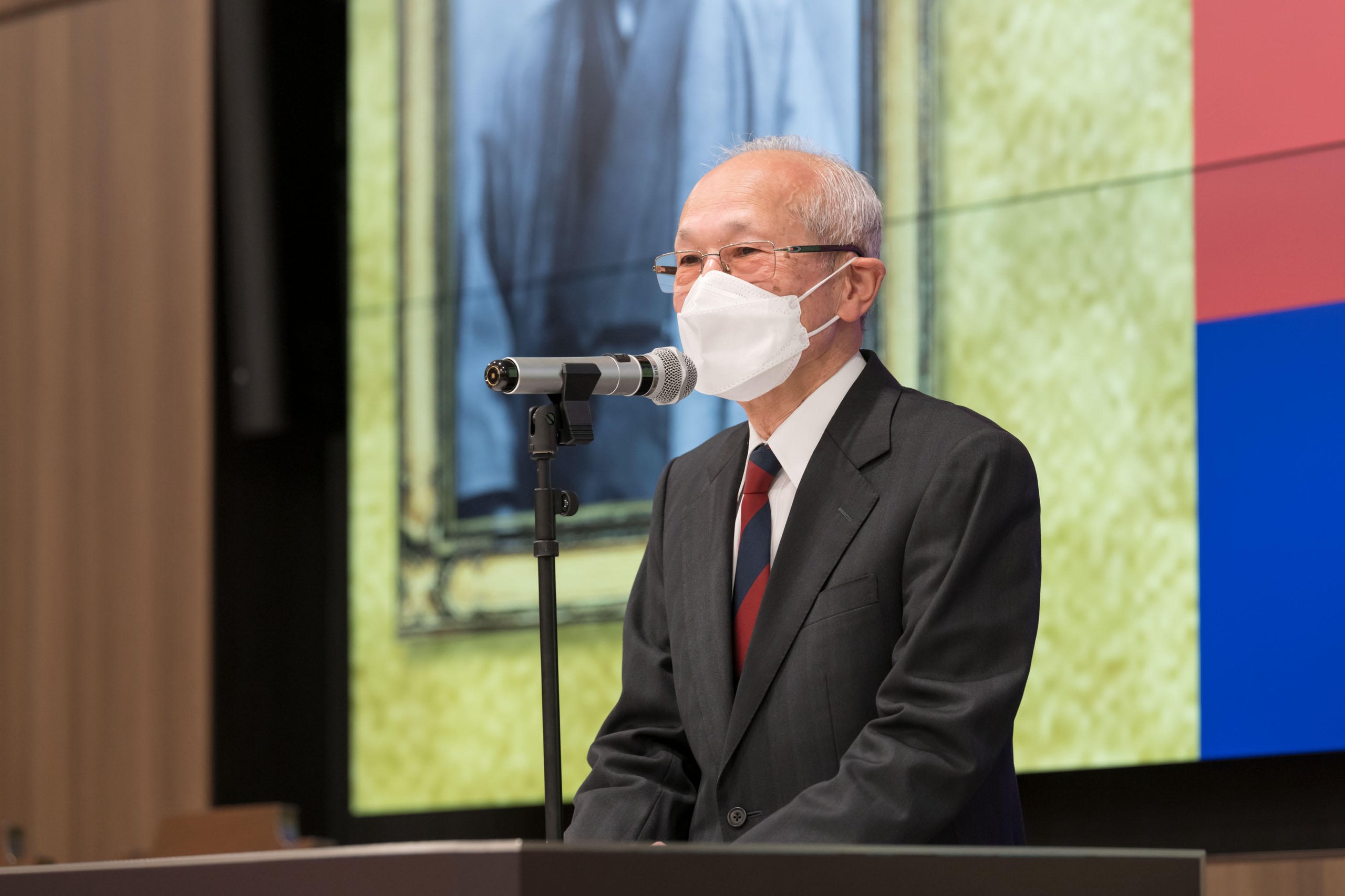 Dr. Koyu Kobayashi, President of the Kitasato Institute, which has close ties with Keio University, was welcomed as a guest of honor. The ceremony began with a New Year's address from Takanori Kanai, Dean of the School of Medicine. This was followed by congratulatory remarks from Kohei Itoh, President of Keio University (read by Vice-President Yuko Kitagawa in his absence), Dr. Koyu Kobayashi, President of the Kitasato Institute, Junzo Takeda, Chairman of the Sanshikai, Morio Matsumoto, Hospital Director, and Makoto Suematsu, Professor at the School of Medicine (representing the faculty and staff).