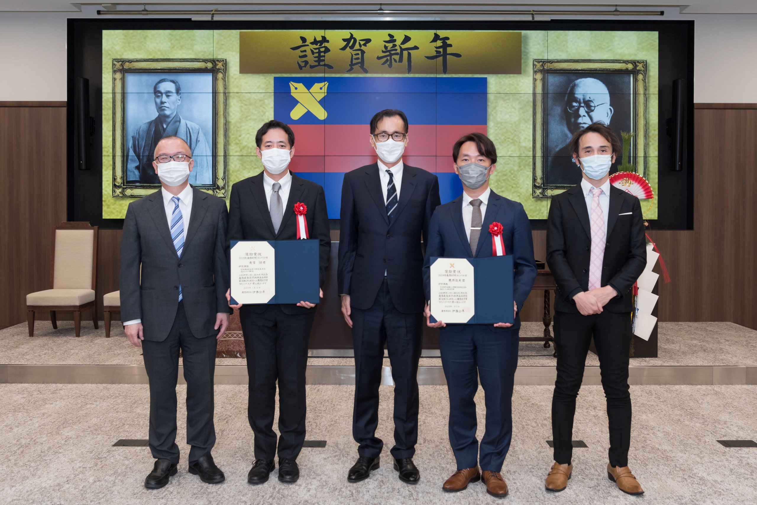 In conjunction with the New Year Celebration, the award ceremony for the Keio Medical Science Prize Rising Star Award, established by the Sakaguchi-Mitsuhiro Memorial Keio University Medical Science Fund, was also held. The two recipients were Associate Professor Toshihide Kurihara of the Department of Ophthalmology and Senior Assistant Professor Min-Kyo Seo of the Department of Infectious Diseases.
