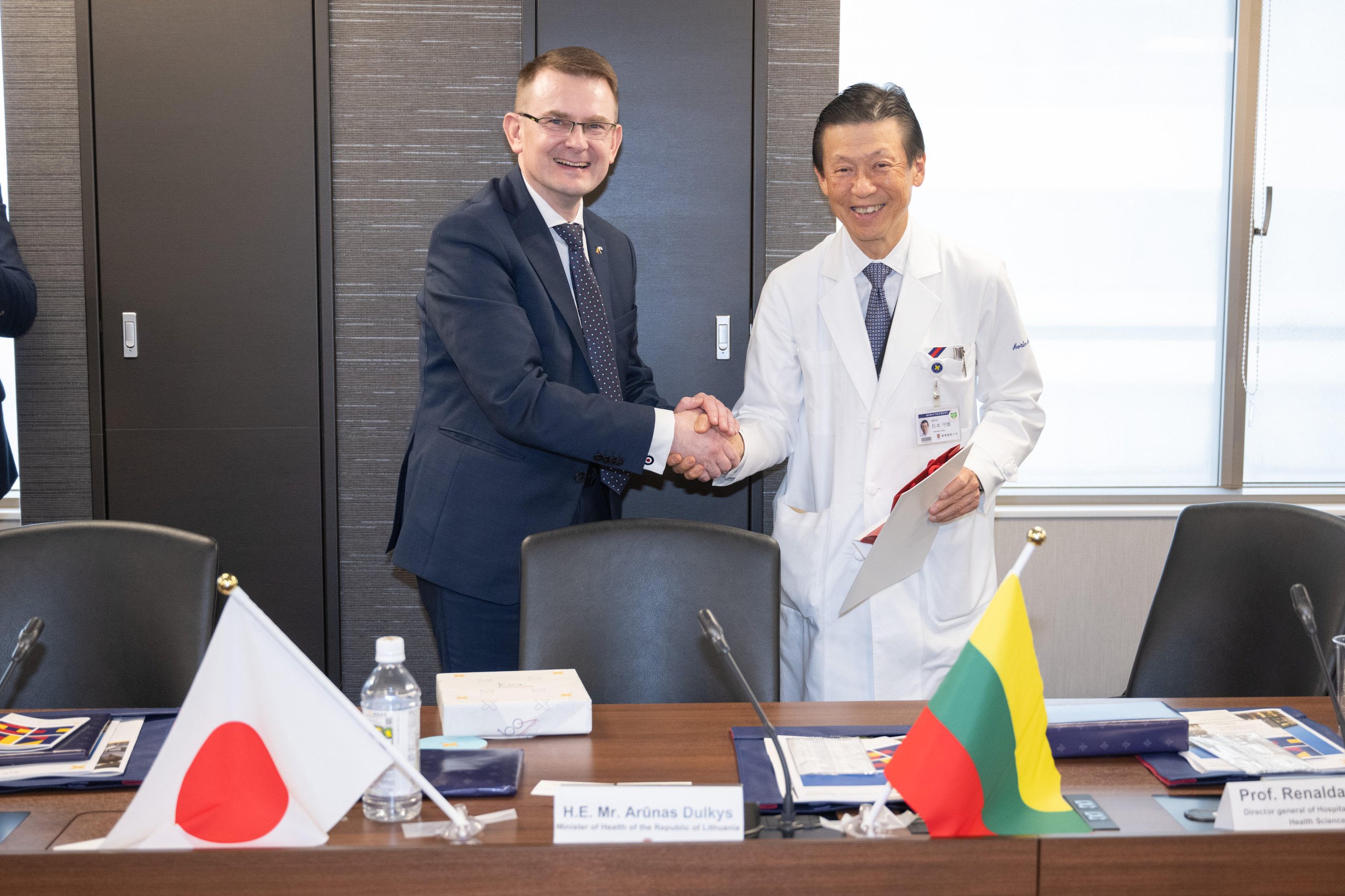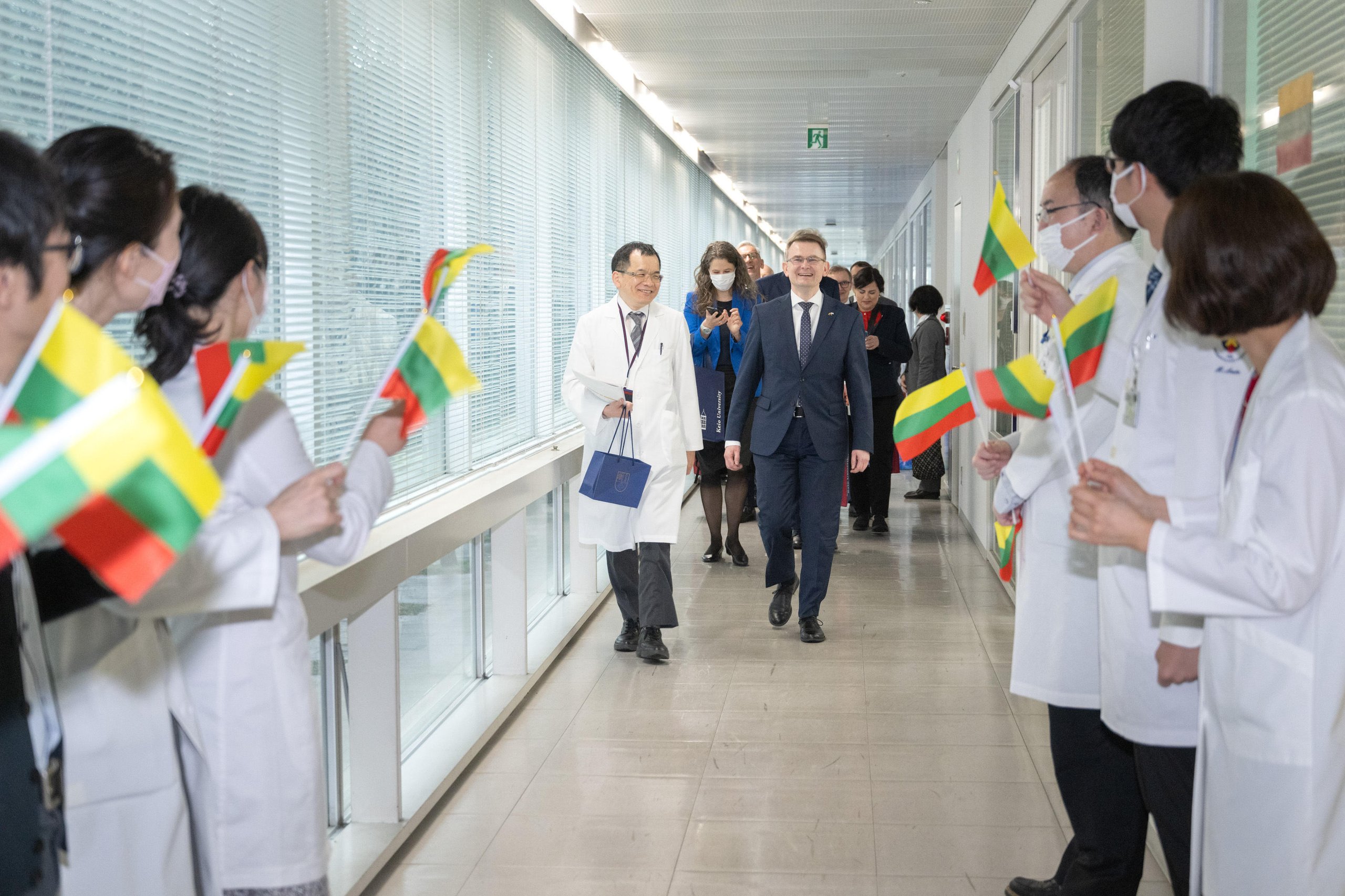 On March 25, a delegation led by Arūnas Dulkys, Minister of Health of the Republic of Lithuania, and Dr. Aurelijus Zykas, Ambassador of Lithuania in Japan, visited the Keio University Hospital at Shinanomachi Campus.