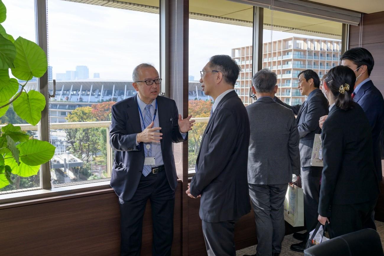 Finally, the group moved to the drawing room, where they engaged in a friendly conversation as Dean Kanai introduced the surrounding famous landmarks visible from the window, such as the National Stadium, to the delegation from National Taiwan University.