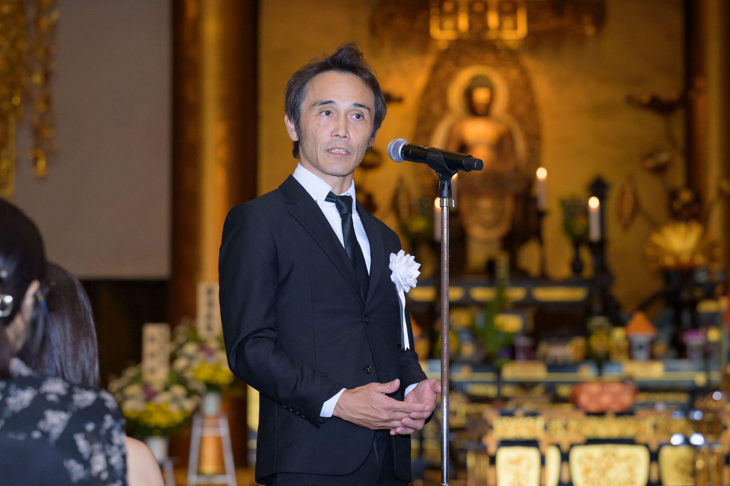 Subsequently, the memorial service for the souls of the anatomical deceased was held in the main hall of Zojoji Temple. During the service, a memorial address was delivered by the Dean of the School of Medicine, and approximately 300 bereaved family members, students, and related parties attended while sutras were chanted by many monks, including His Eminence Kenju Ozawa, the 89th High Priest of Daihonzan Zojoji Temple. Finally, representing the faculty and staff, Professor Yoshiaki Kubota of the Department of Anatomy, School of Medicine, expressed sincere respect and gratitude to the deceased and their families, taking to heart the fact that the bodies were donated for the progress of medical sciences. He also stated that in the context of practical training, the highest priority is placed on approaching dissection while fully sensing the noble will of the deceased who donated their bodies. He expressed his belief that the students of the School of Medicine, who have learned much through dissection, will become good doctors in the future and give back to the bereaved families. The ceremony concluded with a greeting pledging to continue striving further for the development of medical education and medical sciences.