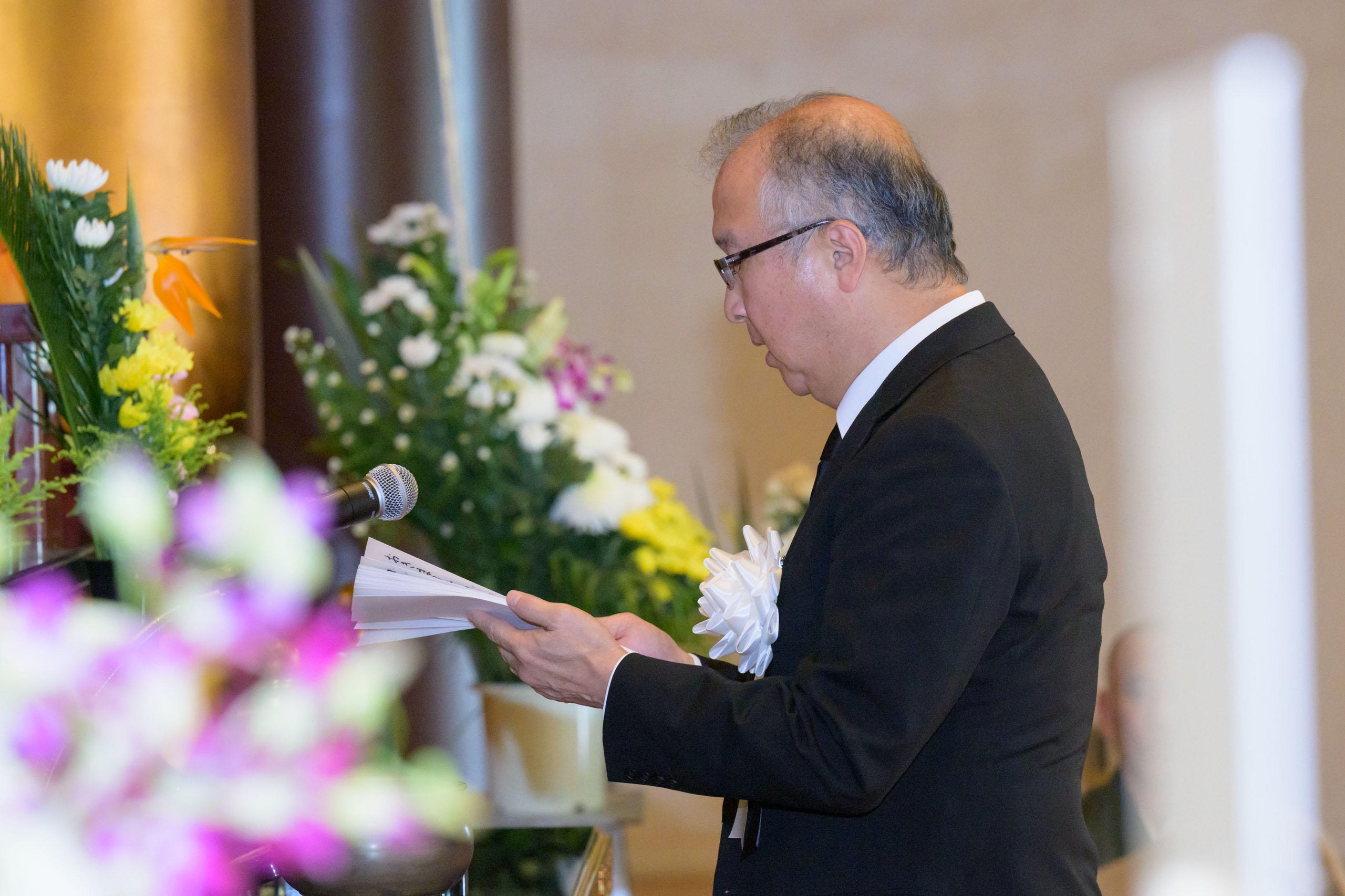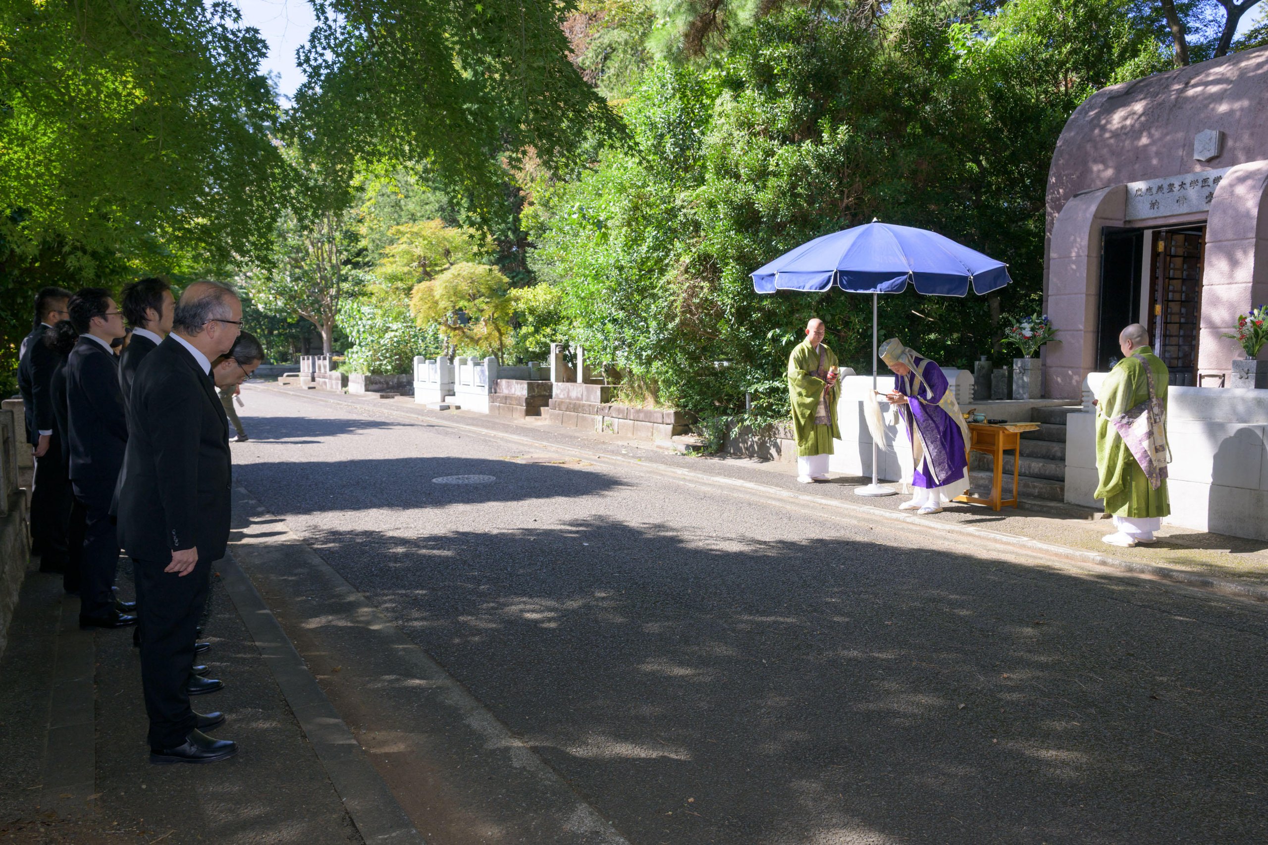 Prior to the memorial service this year, a graveside ceremony was held in front of the School of Medicine's ossuary at Tama Cemetery. Along with the chanting of sutras by monks from Zojoji Temple, incense was offered by officials from the School of Medicine, including Takanori Kanai, Dean of the School of Medicine.