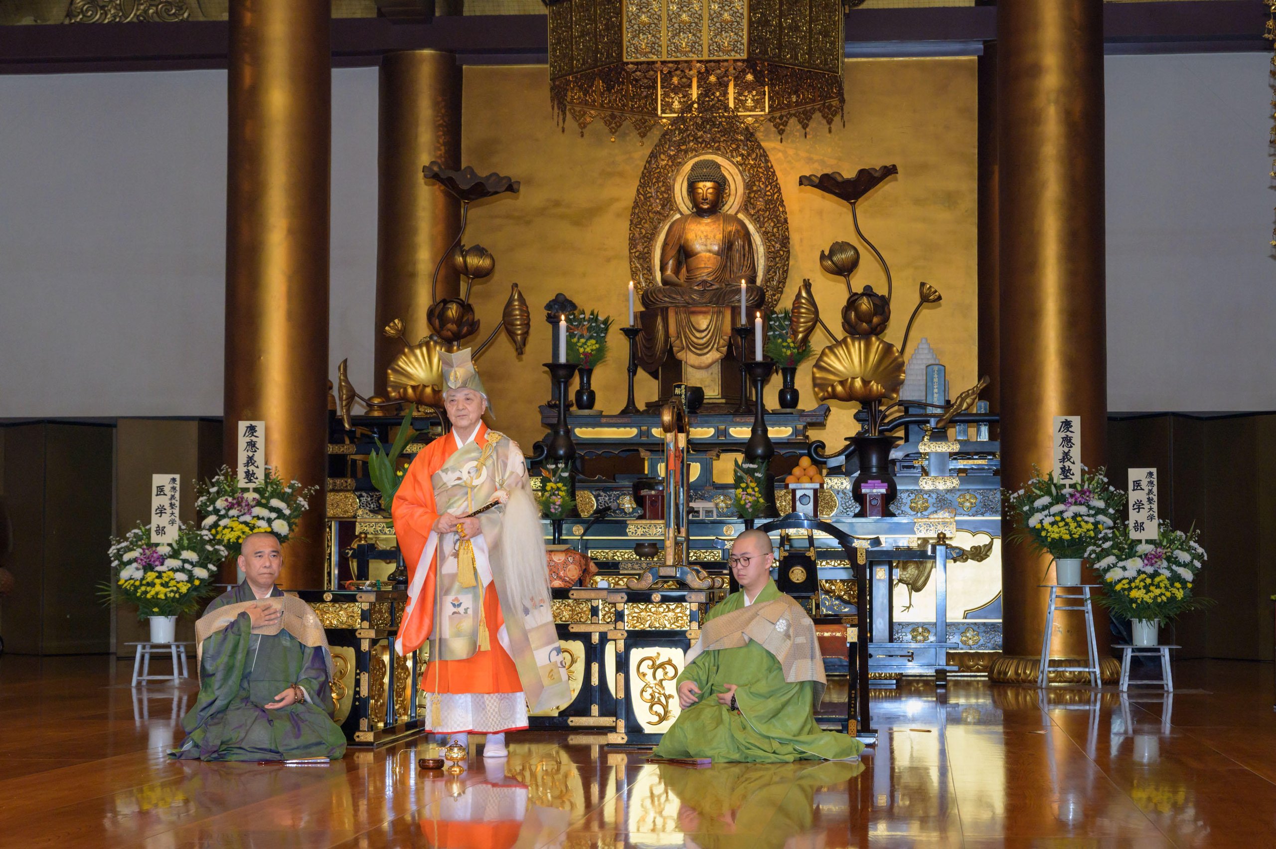 Every year during the autumnal equinox, the School of Medicine holds a memorial service for the souls of the anatomical deceased, welcoming bereaved families and attended by faculty, staff, and students of the School of Medicine. The purpose of this service is to pray for the repose of the souls who offered their precious bodies for the advancement of medical education and academic research. This ceremony has been held at Zojoji Temple in Shiba Park, Minato City, since 1928, and is positioned as one of the most important events in the School of Medicine.