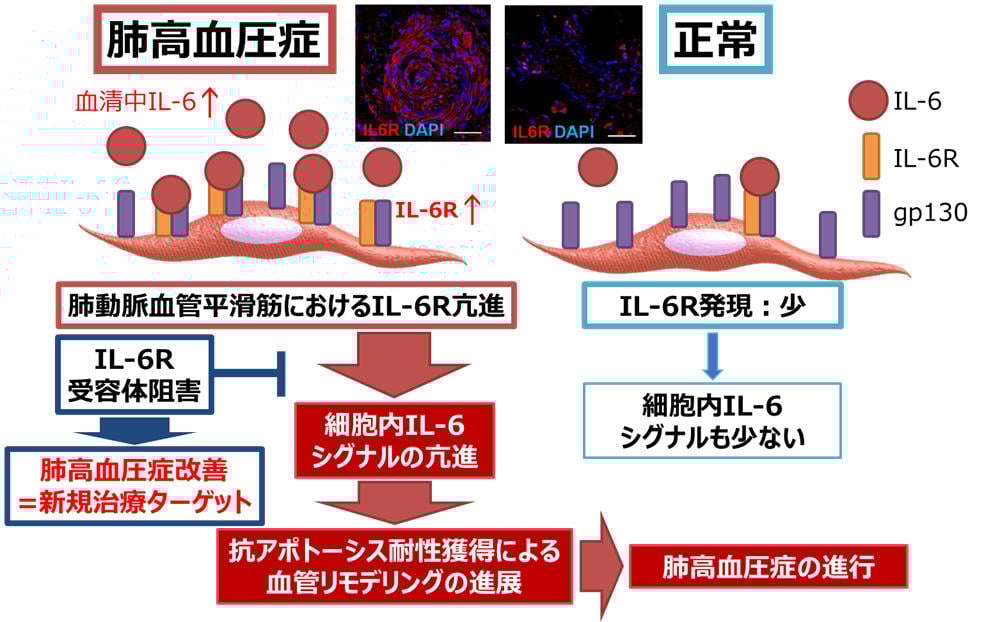 Pulmonary arterial hypertension is designated as an intractable disease by the Ministry of Health, Labour and Welfare, affecting several thousand patients nationwide. It is caused by remodeling, primarily involving vascular endothelial cell damage and smooth muscle proliferation in the peripheral pulmonary arteries, but the detailed mechanism has not been clarified. It was known that inflammatory cytokines, including IL-6, are elevated in the serum of patients with pulmonary arterial hypertension and are poor prognostic factors, but it was unclear how they act on the pulmonary blood vessels themselves. Dr. Tamura was the first to reveal that in patients with pulmonary arterial hypertension, the membrane-bound IL-6 receptor is highly expressed in pulmonary artery smooth muscle cells, and that the IL-6 signal contributes to pulmonary artery remodeling by conferring anti-apoptotic resistance to these cells. Furthermore, by carefully demonstrating that blocking the IL-6 receptor improves pulmonary hypertension using models such as a rat model of pulmonary hypertension and a smooth muscle-specific IL-6 receptor knockout mouse model, this report provides high-quality translational research that offers a scientific basis for future treatment of pulmonary hypertension with IL-6 receptor antibodies, which are scheduled for clinical trials.
