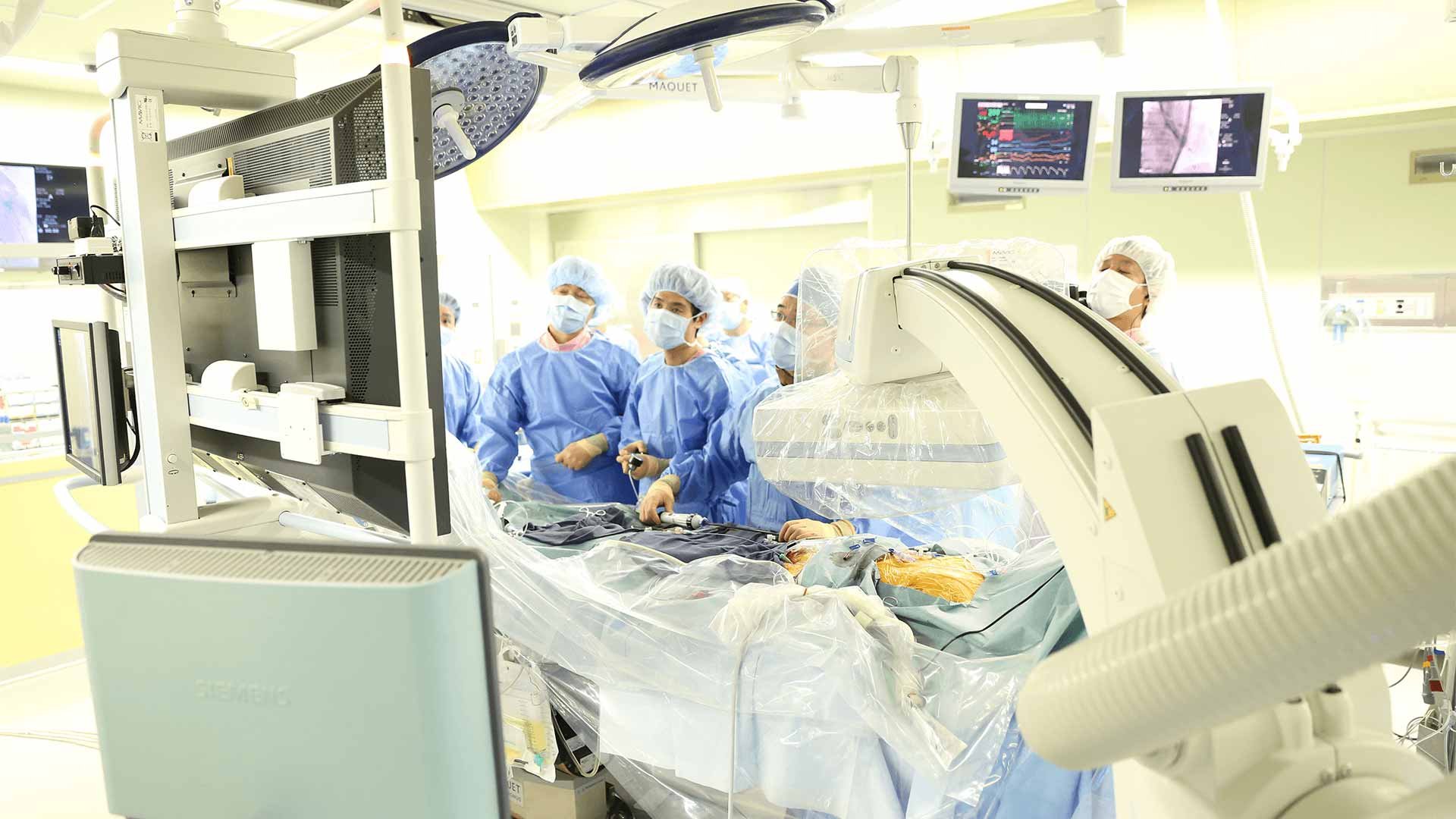 Currently called the Central Operating Department, it provides advanced medical care. They use cluster medical teams across departments for low-invasive surgery. Advanced equipment includes a hybrid operating room (2014) and the da Vinci Xi surgical robot (2016). With over 14,000 inpatient and outpatient surgeries combined, they have a top-class record nationwide.