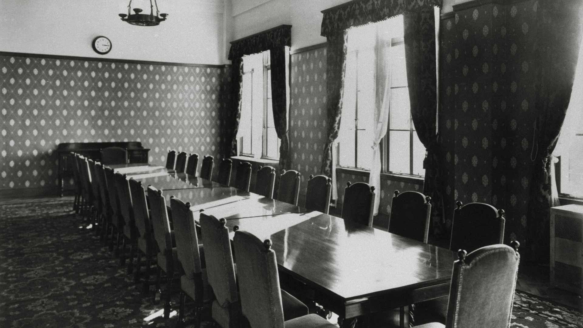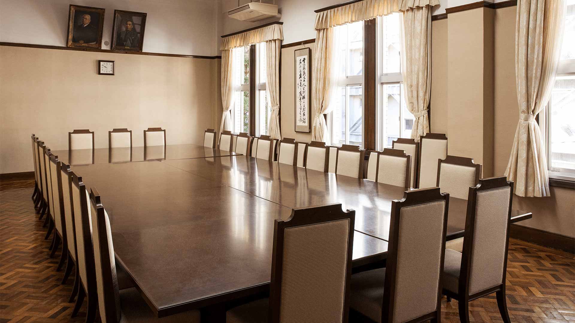 A conference room was established on the second floor of Kitasato Memorial Medical Library. This historic building was designed by Junken Wada in the Renaissance Revival style, the features of which are evident in the lighting and furnishings.