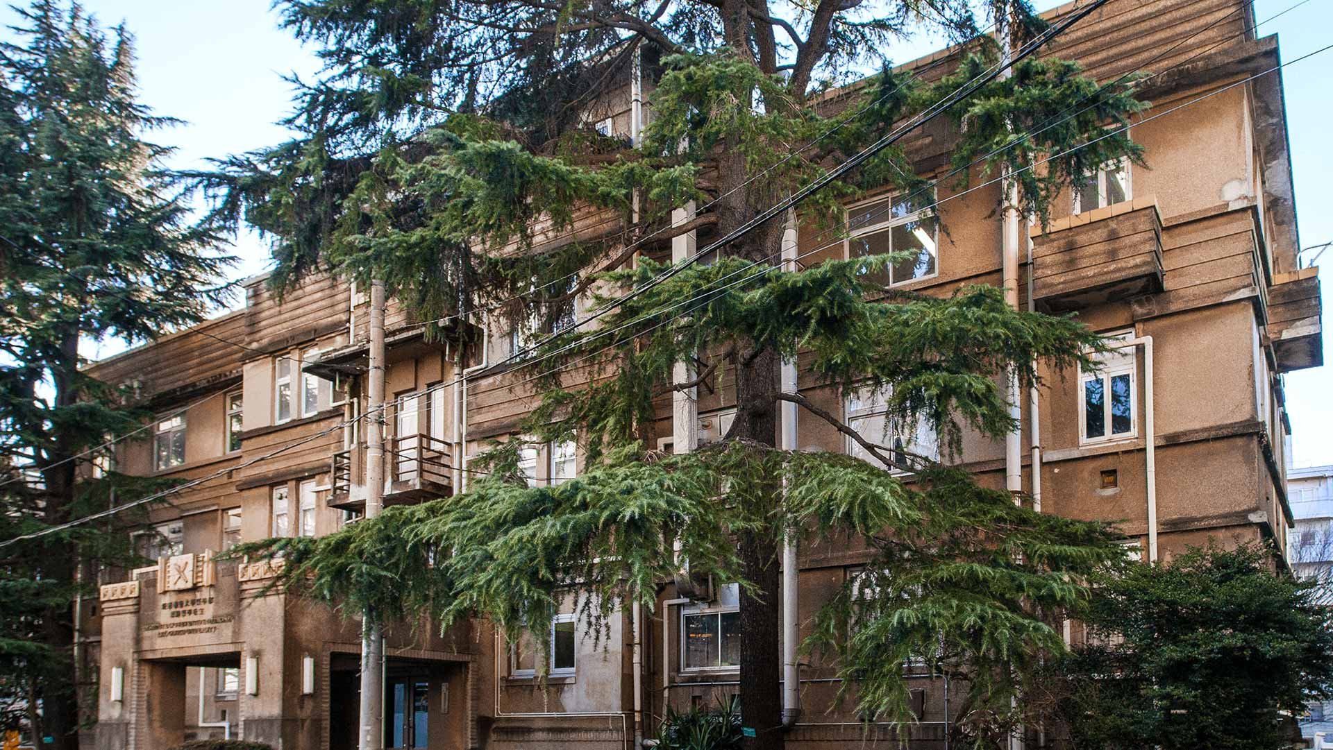 Today, the building retains its original exterior and is used for laboratories, School of Medicine classes, and other purposes. Hexagonal marks can be found on the driveway approaches on both sides of the entrance. These are the scars left by incendiary bombs that directly hit the building during the Great Tokyo Air Raid of May 1945.
