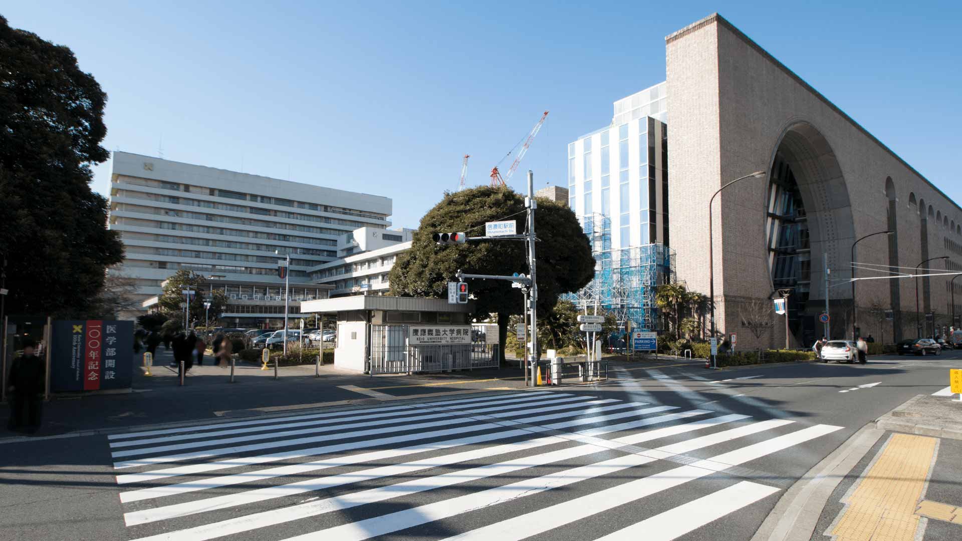 In 2017, the Keio University University School of Medicine celebrated its 100th anniversary. In the Shinanomachi area, which has changed dramatically over the past century, commemorative signs were displayed at the hospital's main entrance, on the campus grounds, and along Gaien Higashi-dori Street. This milestone year provided an opportunity to reflect on “the past 100 years and the next 100 years.”