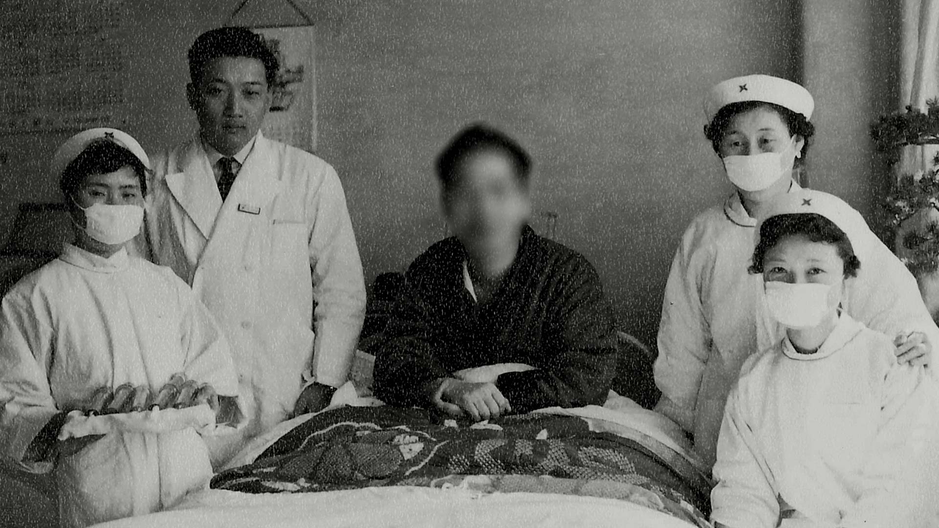 Masayuki Watanabe (second from left) working in the Keio University Hospital tuberculosis ward.