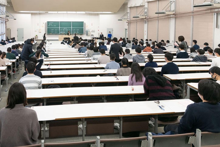 Entrance examinations are held sequentially by faculty, with the Faculty of Pharmacy being the first to take place on February 10; the Faculty of Nursing and Medical Care (first round) on February 11; Faculty of Science and Technology on February 12; Faculty of Economics on February 13; Faculty of Business and Commerce on February 14; Faculty of Letters on February 15; Faculty of Law on February 16; Faculty of Policy Management on February 17; Faculty of Environment and Information Studies on February 18; the School of Medicine (first round) on February 19; and the School of Medicine (second round) on March 1.