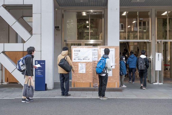 The following photographs show scenes on the day of the entrance examination for the Faculty of Pharmacy that was held at Mita Campus on February 10.