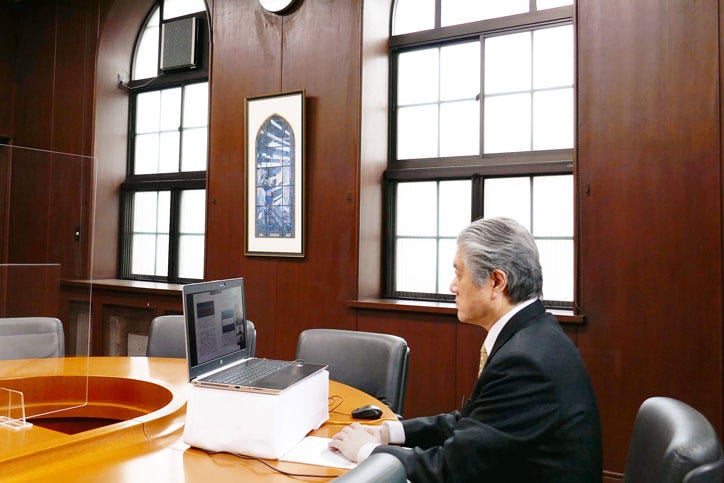 The students gave a report on their activities to date and their outlook for the future, which included the special website, "Keio students' Novel Coronavirus Countermeasures Susume," launched last year in a joint effort between the All Keio Student Council and student volunteers from the School of Medicine.