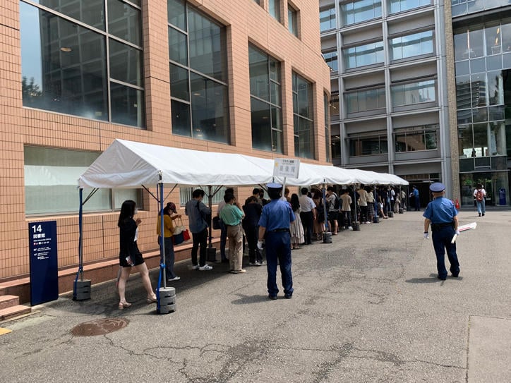 As the line for the elevator to the venue sometimes extends outdoors, a tent was put up to protect people from the sun and rain, while the information, etc., available inside the venue is being improved daily to ensure its smooth operation.