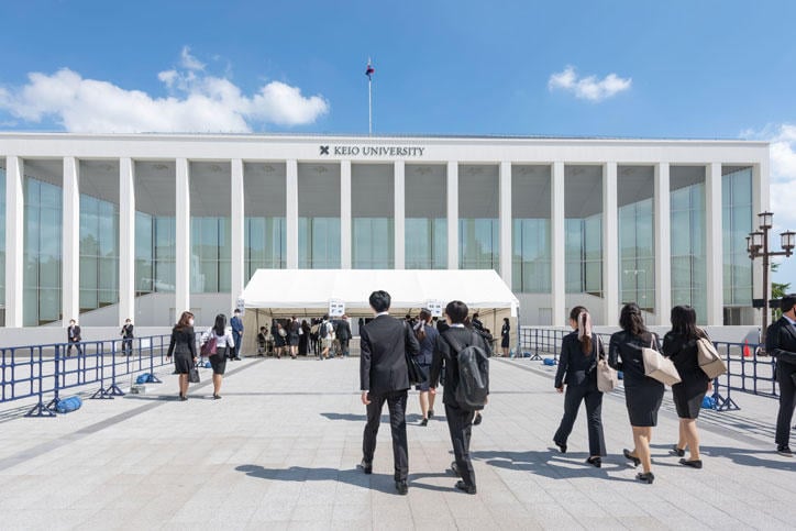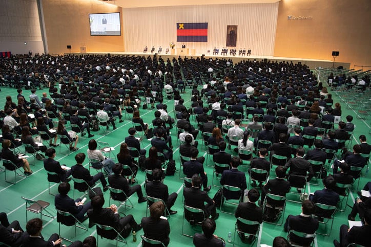 In the 2020 academic year, Keio University's campuses were temporarily closed during the Spring Semester from the perspective of preventing the spread of COVID-19 (coronavirus disease), while the entrance ceremonies that would usually take place in April and September were both conducted online in September of 2020. Participation in this special event to once again welcome in person students admitted in the 2020 academic year was limited to the students themselves, and it was held over three sessions, in order to give the maximum consideration to the health and safety of Keio students as well as prevent the spread of infections.