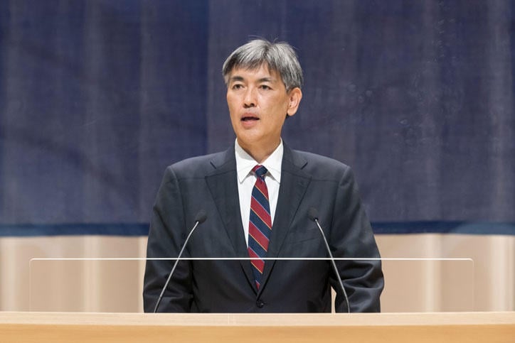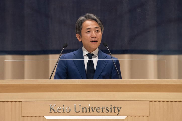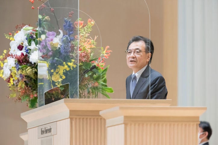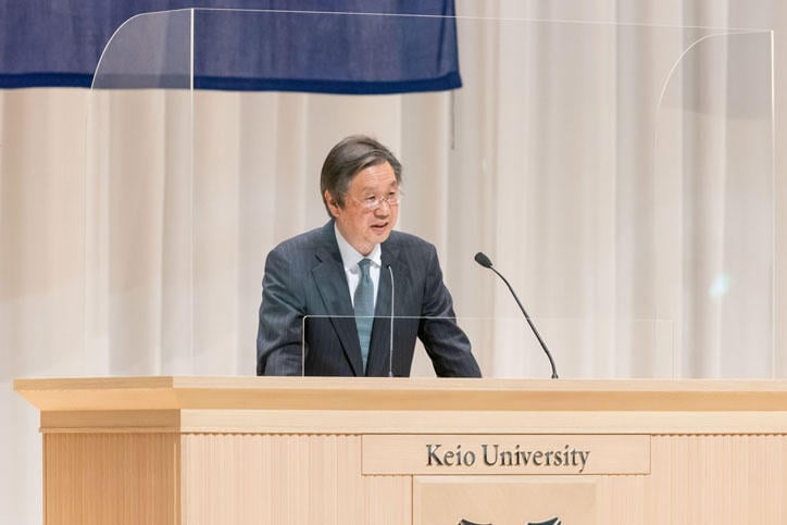 At the ceremonies, following President Kohei Itoh's address and introduction of those onstage, Vice-President Kotaro Yamagishi (session 1), Vice-President Yoshimitsu Matsuura (session 2), and Vice-President Masayuki Amagai (session 3) each delivered speeches entitled "A Message to Keio Students." President Itoh entreated students as members of Keio University to strive to become "leaders of all society" blazing trails to shape the future, while remaining optimistic about a bright future for society and vigilant to worst case scenarios, and to join him in forging a new campus life.