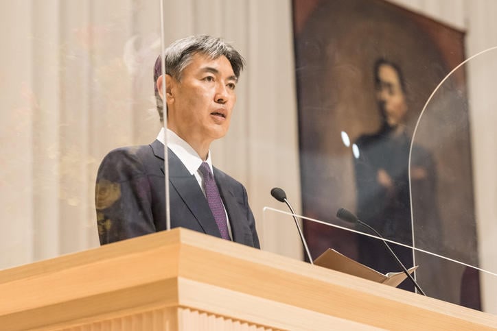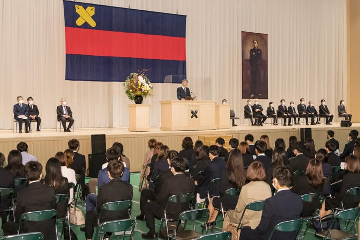 Participation in the ceremony was limited to new students and proceedings were streamed online in order to give the utmost consideration to preventing the spread of coronavirus disease.