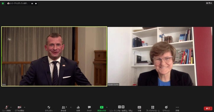 As Dr. Katalin Karikó is originally from Hungary, Norbert Palanovics, the Ambassador Extraordinary and Plenipotentiary of Hungary, also participated in the Zoom discussions led by President Kohei Itoh and the chairperson for the selection committee of the Keio Medical Science Prize, Haruhiko Siomi.