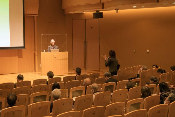 On Tuesday, December 14, Keio University held its traditional Mita Public Speaking Event. For the 710th event, held for the first time in two years, Dr. Hiroyoshi Higuchi, Professor Emeritus at Tokyo University and Visiting Professor at the Keio University Research and Education Center for Natural Sciences, gave a lecture on "The Migration of Birds and the Conservation of the Global Environment." While such events usually take place in the Mita Public Speaking Hall (Mita Enzetsu-kan), this year it was held at the Mita Campus North Hall so as to give utmost precaution against the spread of COVID-19 by allowing for socially-distanced seating.
