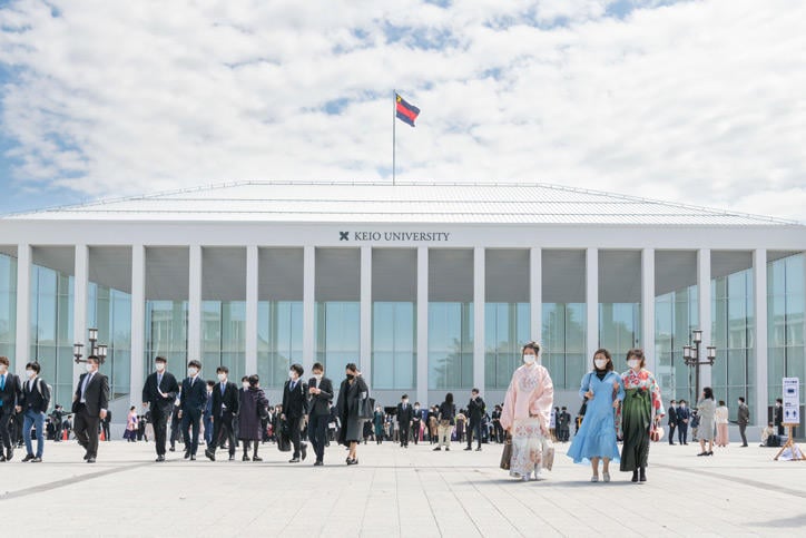The AY 2021 Graduate Commencement Ceremony was held on Monday, March 28, at Hiyoshi Commemorative Hall. Degrees were conferred on a total of 1,496 students from across Keio University's 14 graduate schools (200 doctoral degrees, 1,175 master’s degrees, and 121 professional degrees) for the Fall Semester of the academic year.