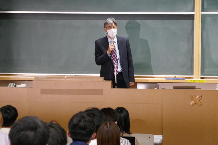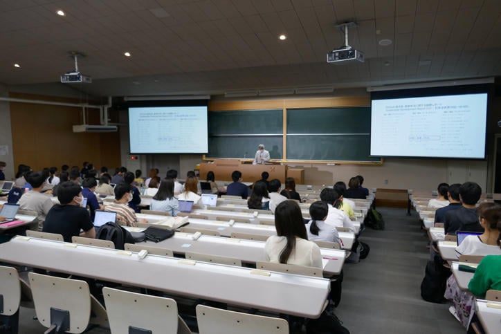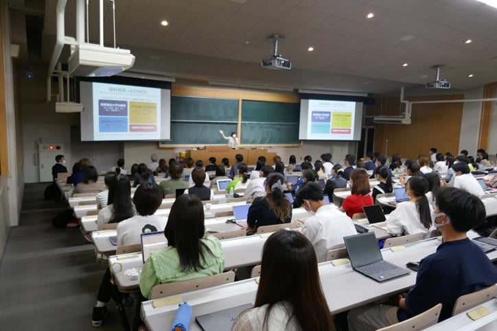 Keio University President Kohei Itoh delivered an address at the beginning of the conference. This was followed by a lecture on the importance of an education in thinking about the SDGs by Koji Ioku, Director of the Research and Education Center for Natural Sciences, and a lecture on how to locate and gather information by Hiroe Nagano, Manager of the Hiyoshi Media Center Public Services Section. The students in attendance gave the speakers their full attention, with many taking meticulous notes throughout the event.