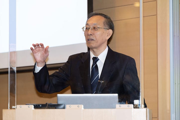 On Wednesday, November 16, the 2022 Shinzo Koizumi Memorial Lecture, a lecture by Mr. Daikichi Fukushima titled "What I Learned from Prostaglandins," was held in the Medium Auditorium on the B1 floor of Building 1 at the Shiba-Kyoritsu Campus.