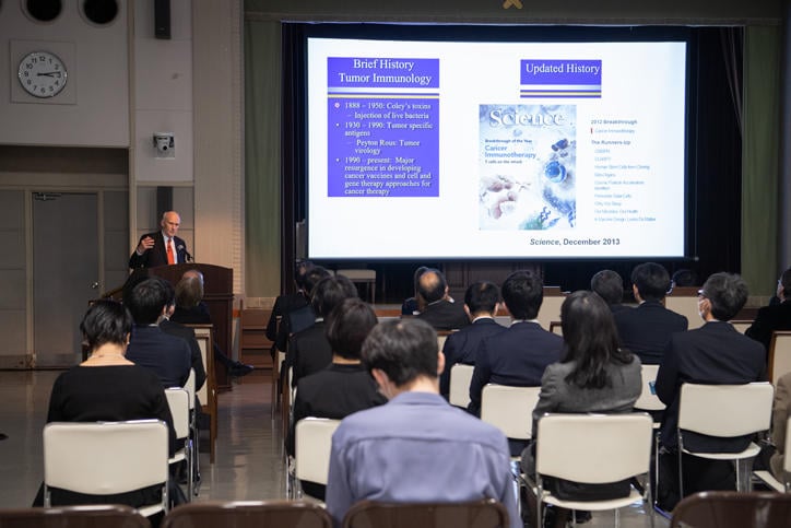 Lectures by both recipients followed an address by Professor Takanori Kanai, Dean of the School of Medicine, at the subsequent commemorative lecture session. An audience of over 200 attendees, including distinguished guests, faculty and staff members, and students, listened intently to the lectures and engaged the recipients in a lively Q&A.