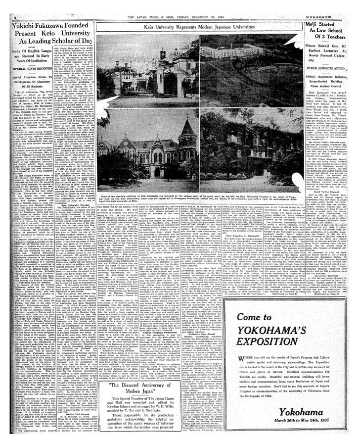 The Japan Times, the oldest English newspaper in Japan, was founded in 1897 and often reported about Fukuzawa's role in the country and about Keio University, which he had established in 1858.